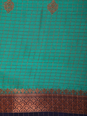 Aqua Green Checks Woven Mysore Silk Saree With Contrast Border