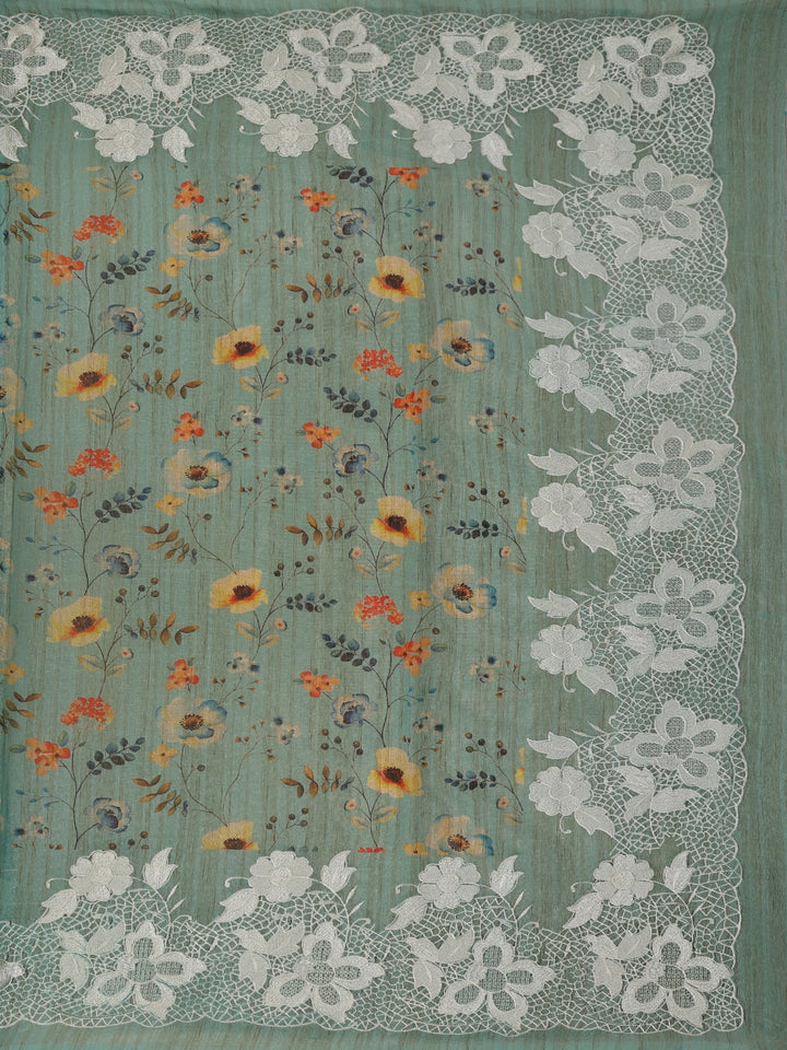 Aqua Green Floral Design Semi Tussar Saree