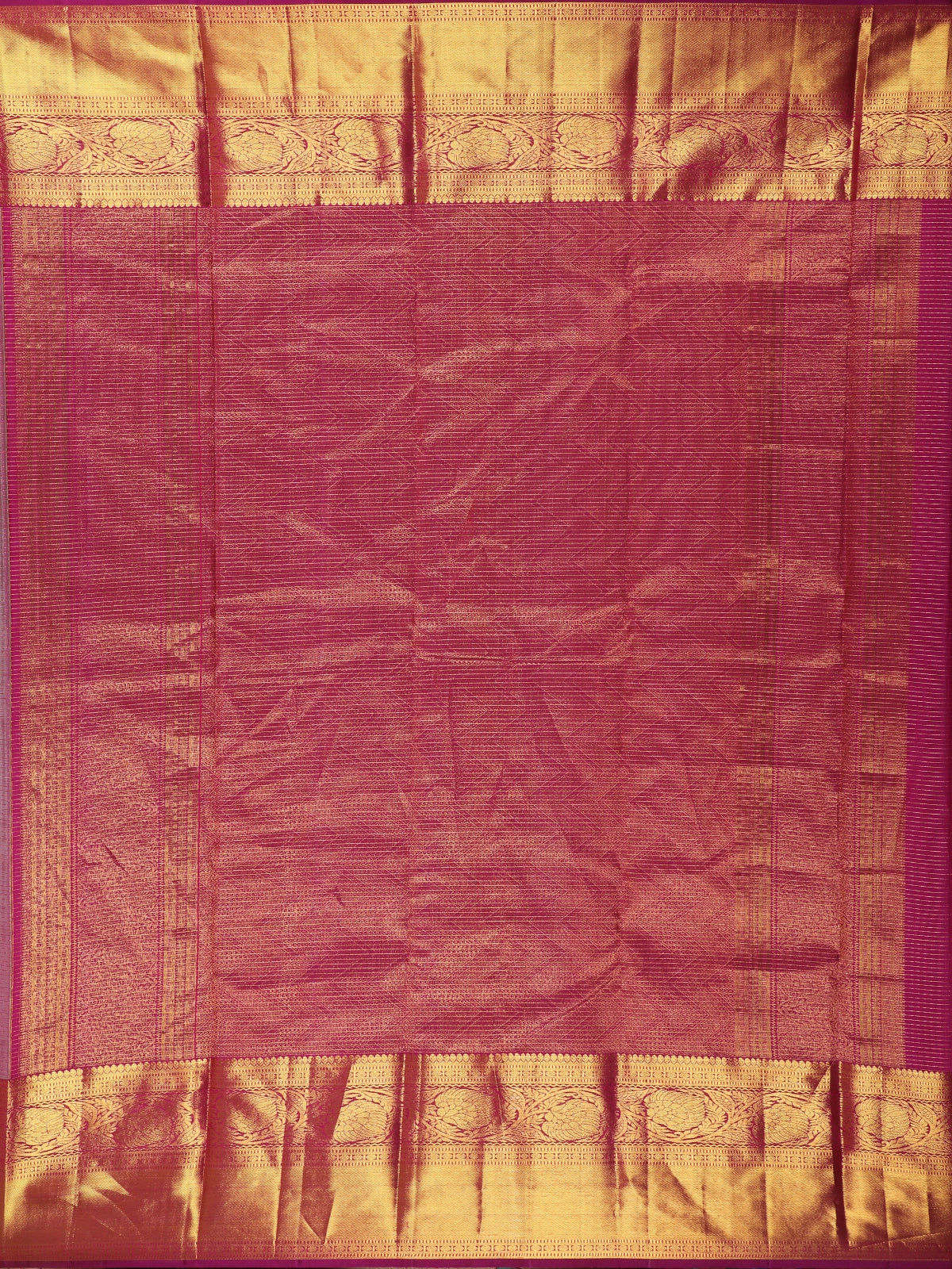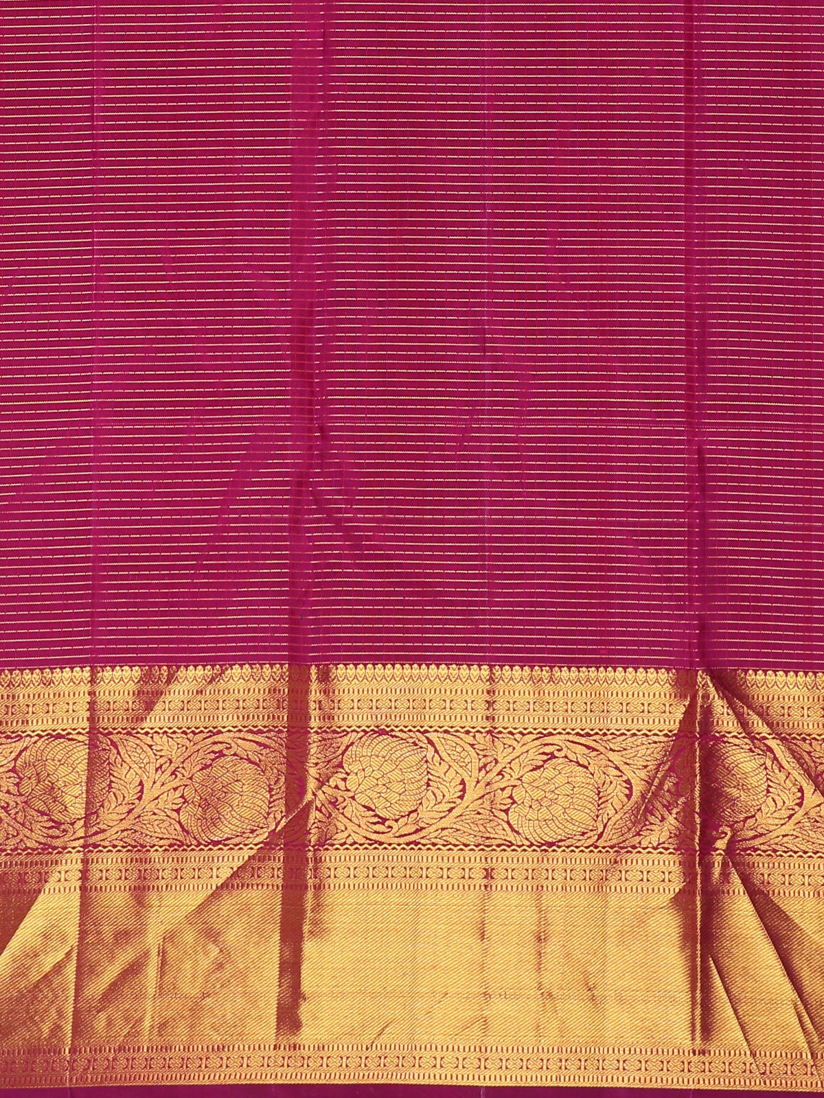 Crafted from pure Kanchipuram silk, the saree offers a rich, smooth drape with a natural lustre that reflects the timeless artistry of South Indian weaving. The fine checks create a structured yet elegant look, making the saree visually appealing without being overpowering.