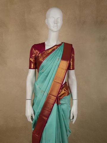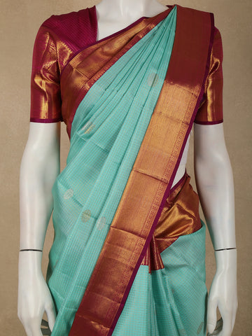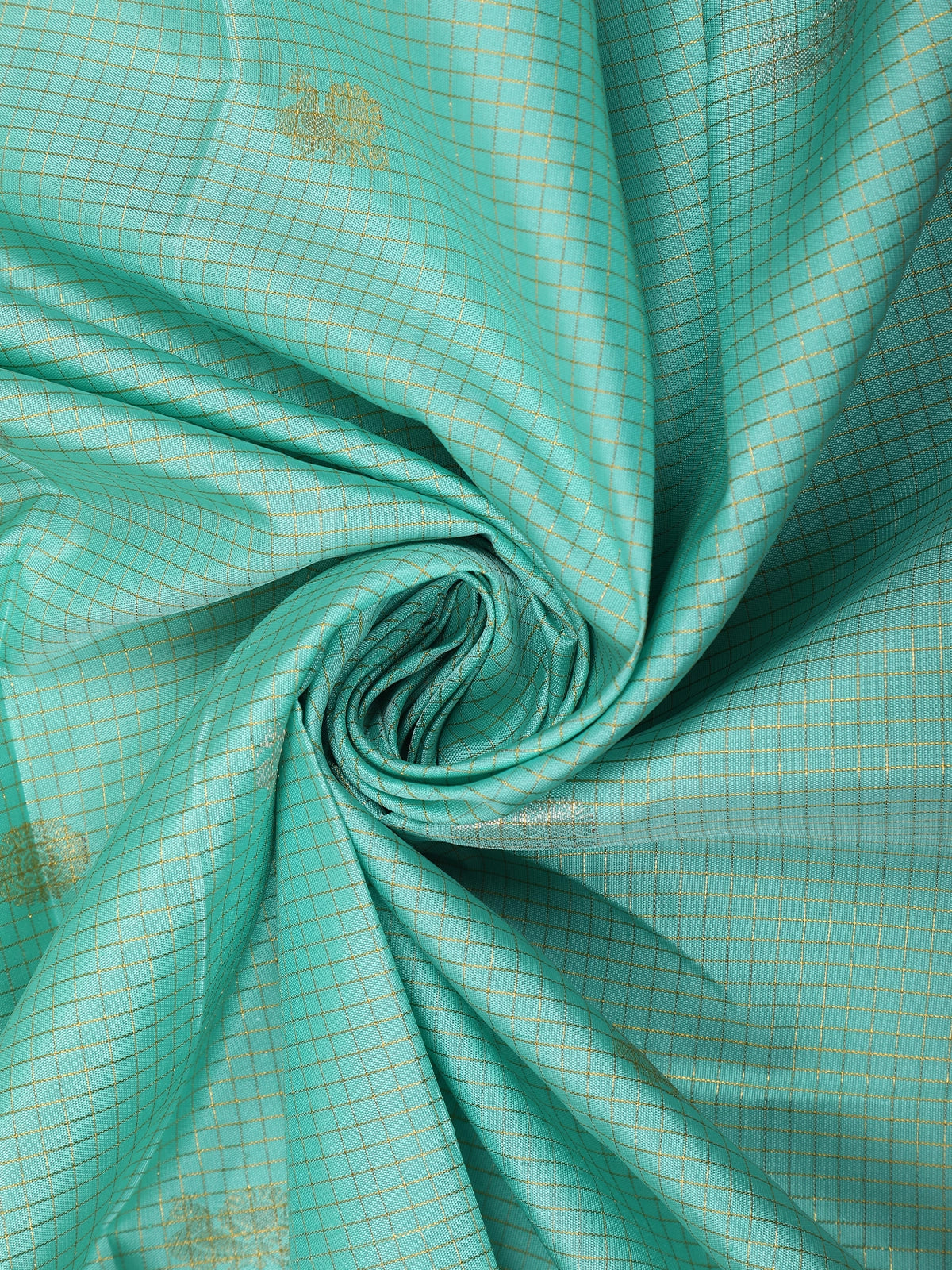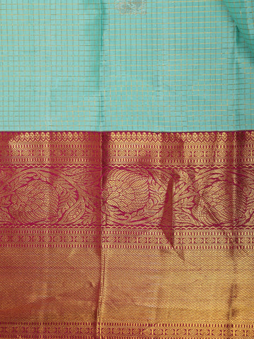 Aqua Blue Checked Zari Woven Design Pure Kanchipuram Silk Saree with Contrast Border