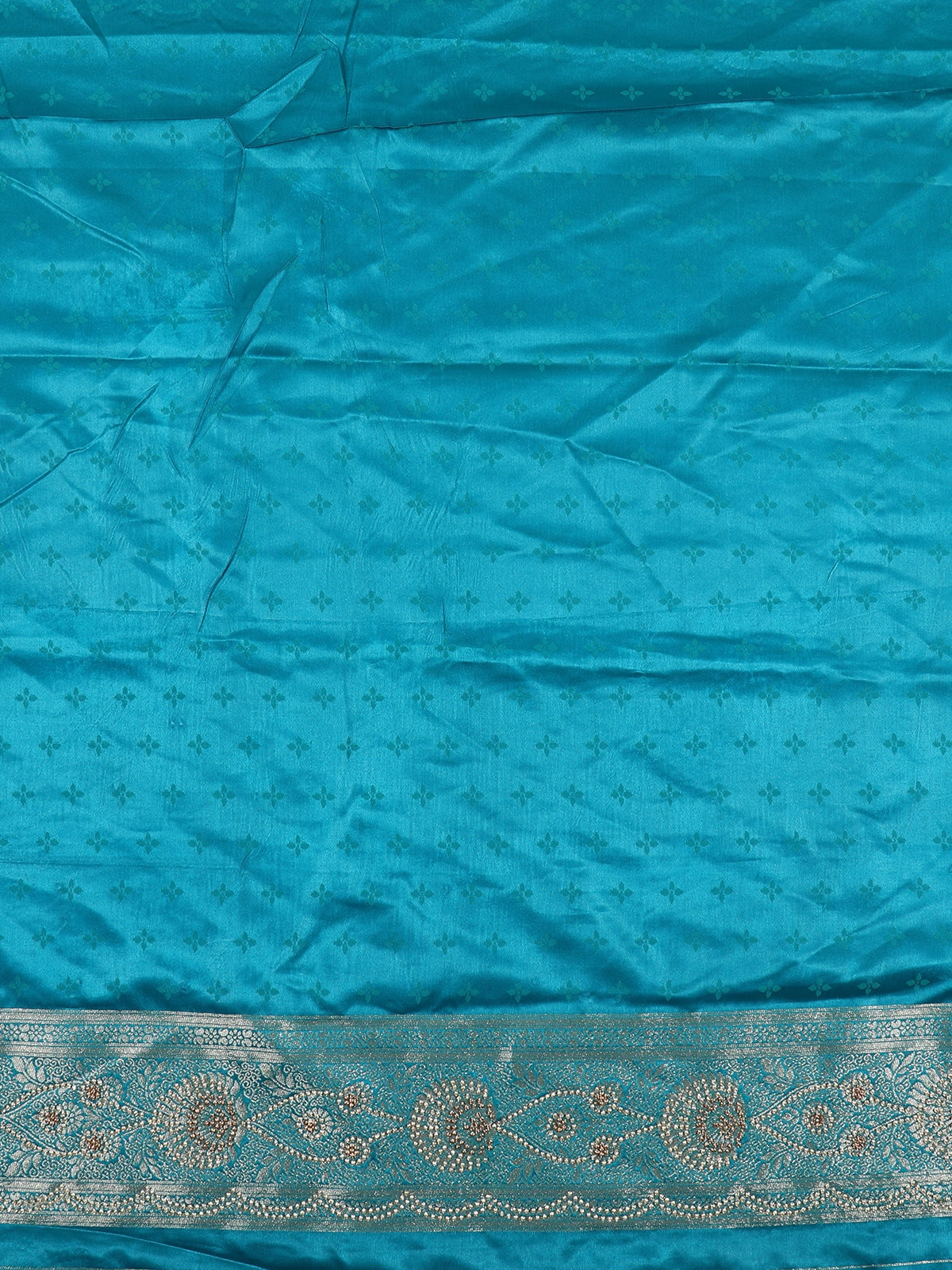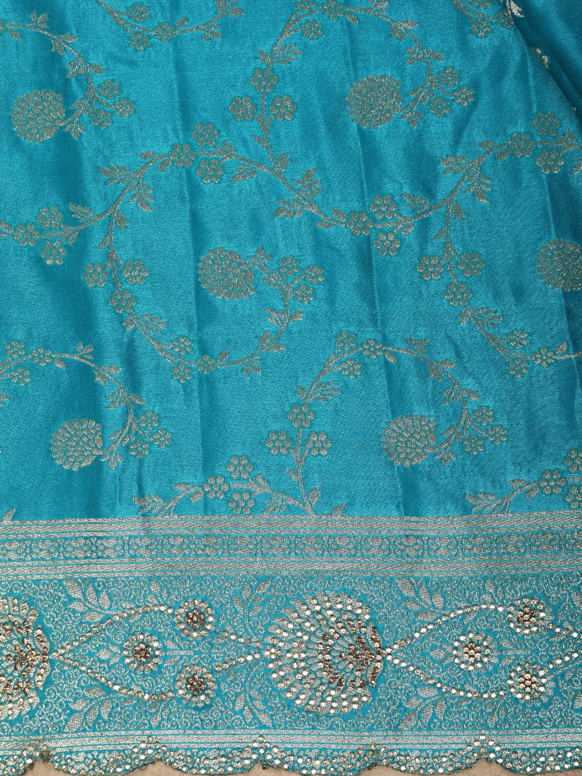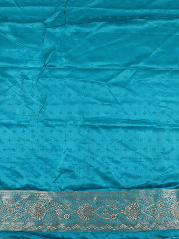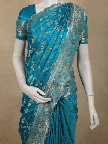 Aqua Turquoise Blue Floral Zari Woven Design Banarasi Silk Designer Saree with Designer Border