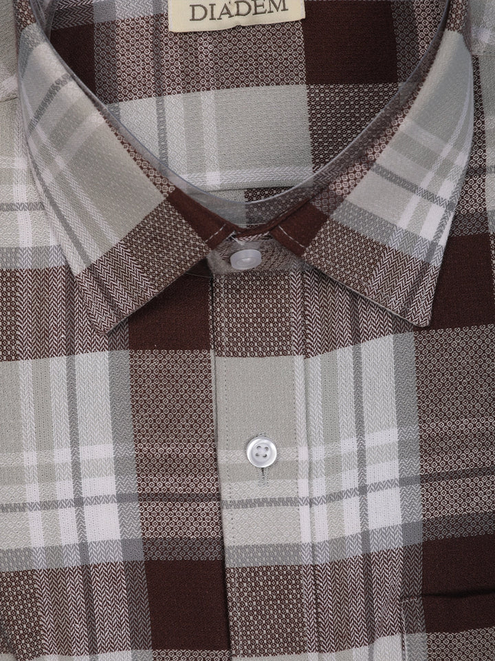 The shirt features a smart checked pattern in earthy brown tones, giving it a versatile appeal that works well for casual outings, office casuals, and weekend gatherings. Designed with full sleeves and a crisp shirt collar, it strikes the right balance between relaxed charm and smart dressing.
