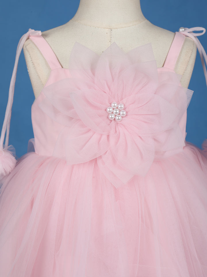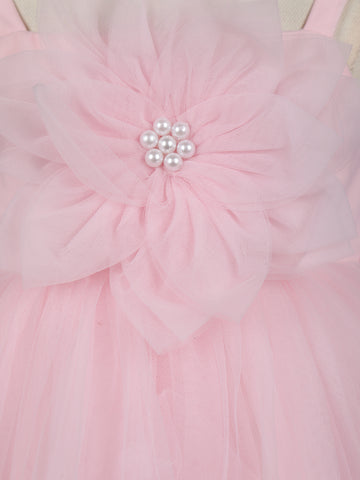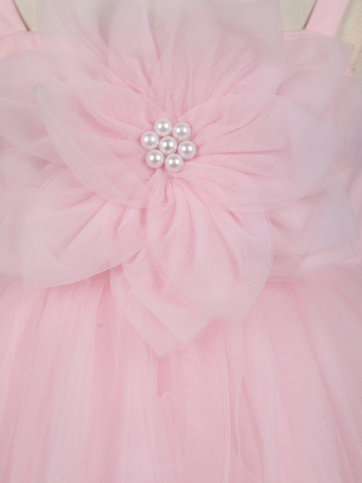 Let your little one shine bright in this Pink Floral Embellishment Design Net Frock, a dreamy creation made for celebrations and special moments. Crafted from soft net fabric with a smooth satin lining, this frock combines elegance, comfort, and playful charm in one delightful ensemble.