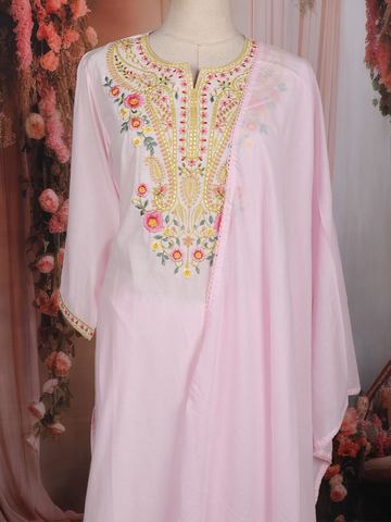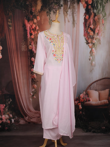 Baby Pink Floral Embroidered Cotton Salwar Suit with Dupatta