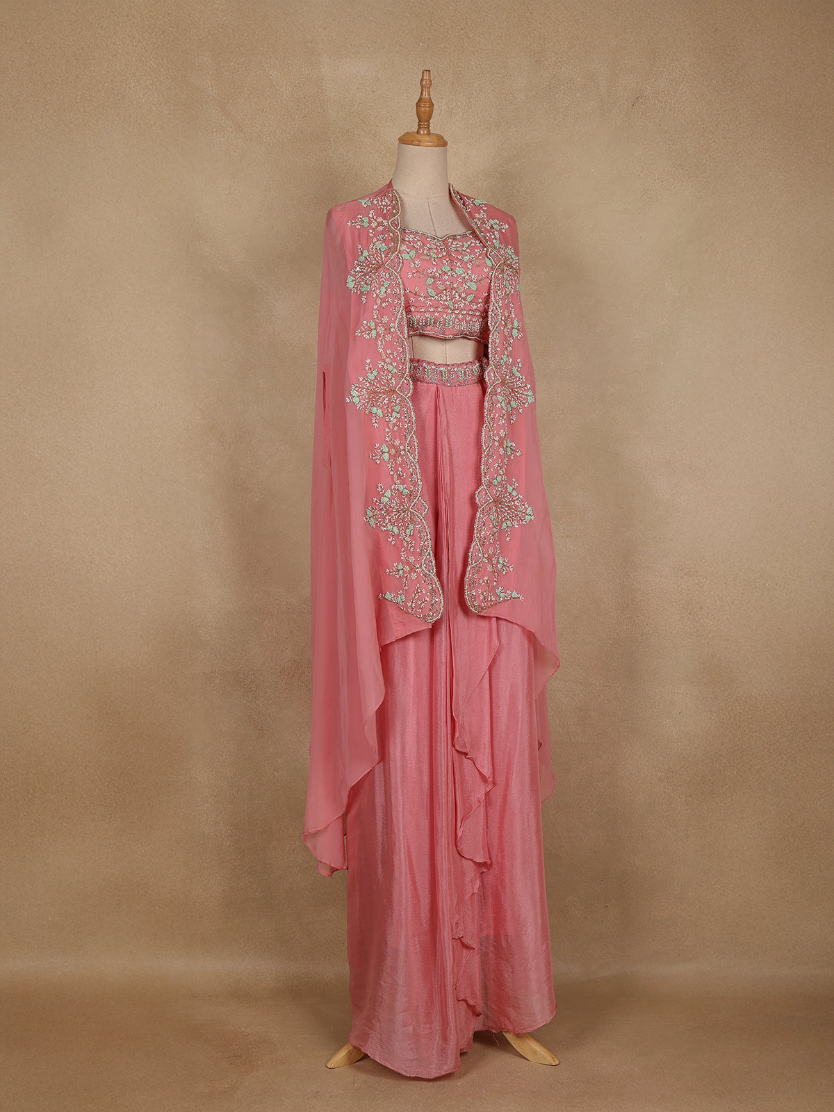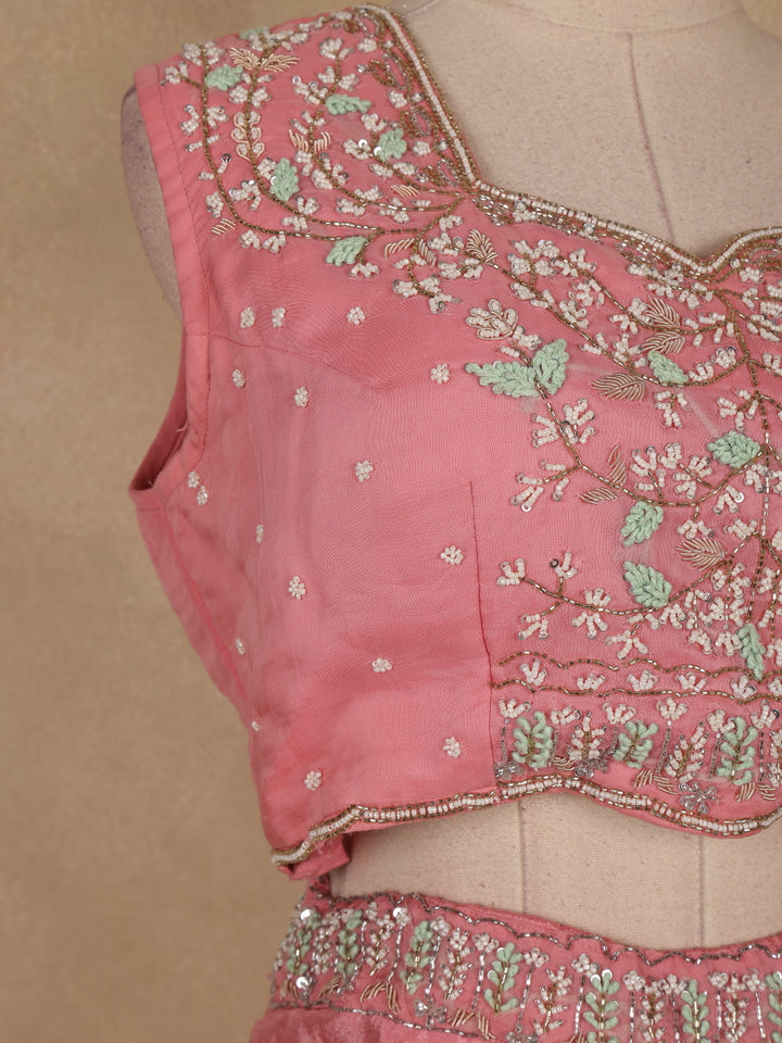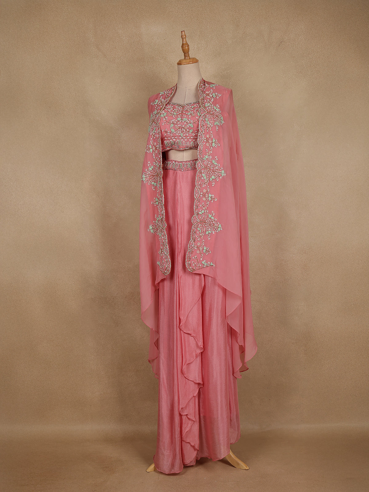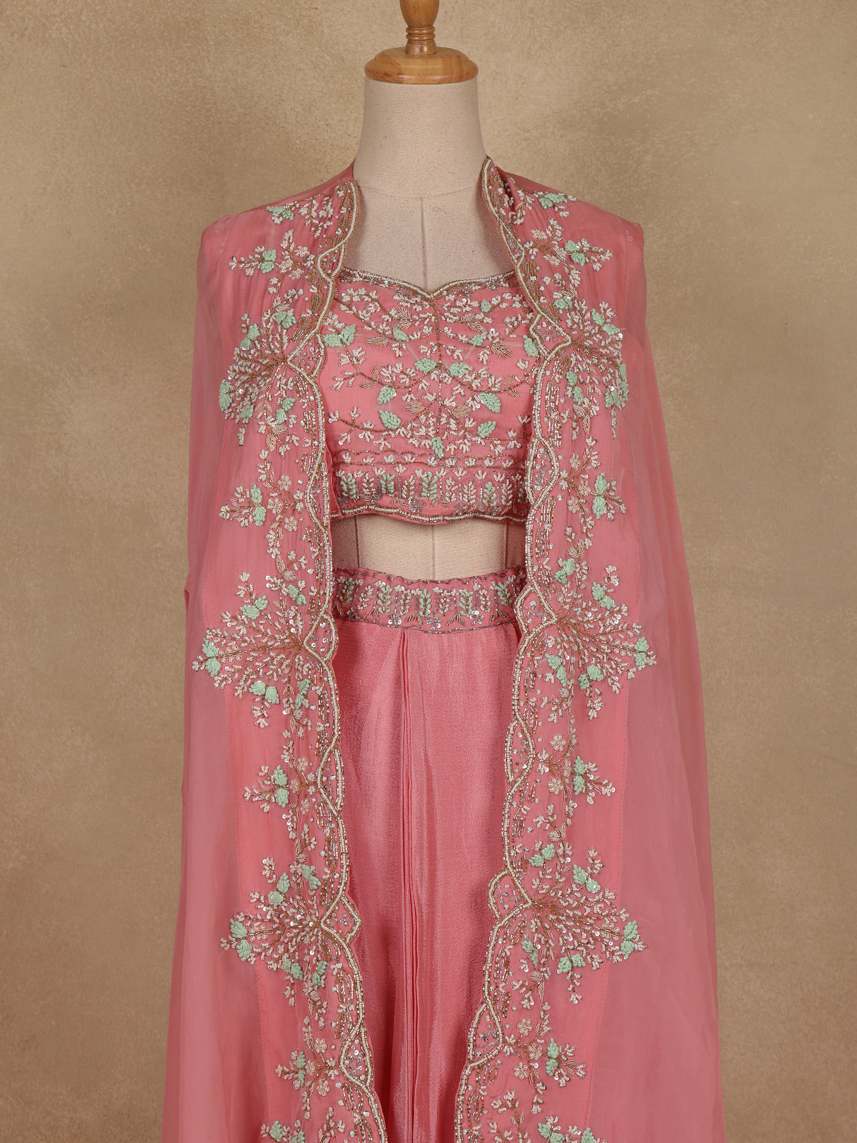 Baby Pink Floral Embroidered Design Georgette Skirt Top with Dupatta