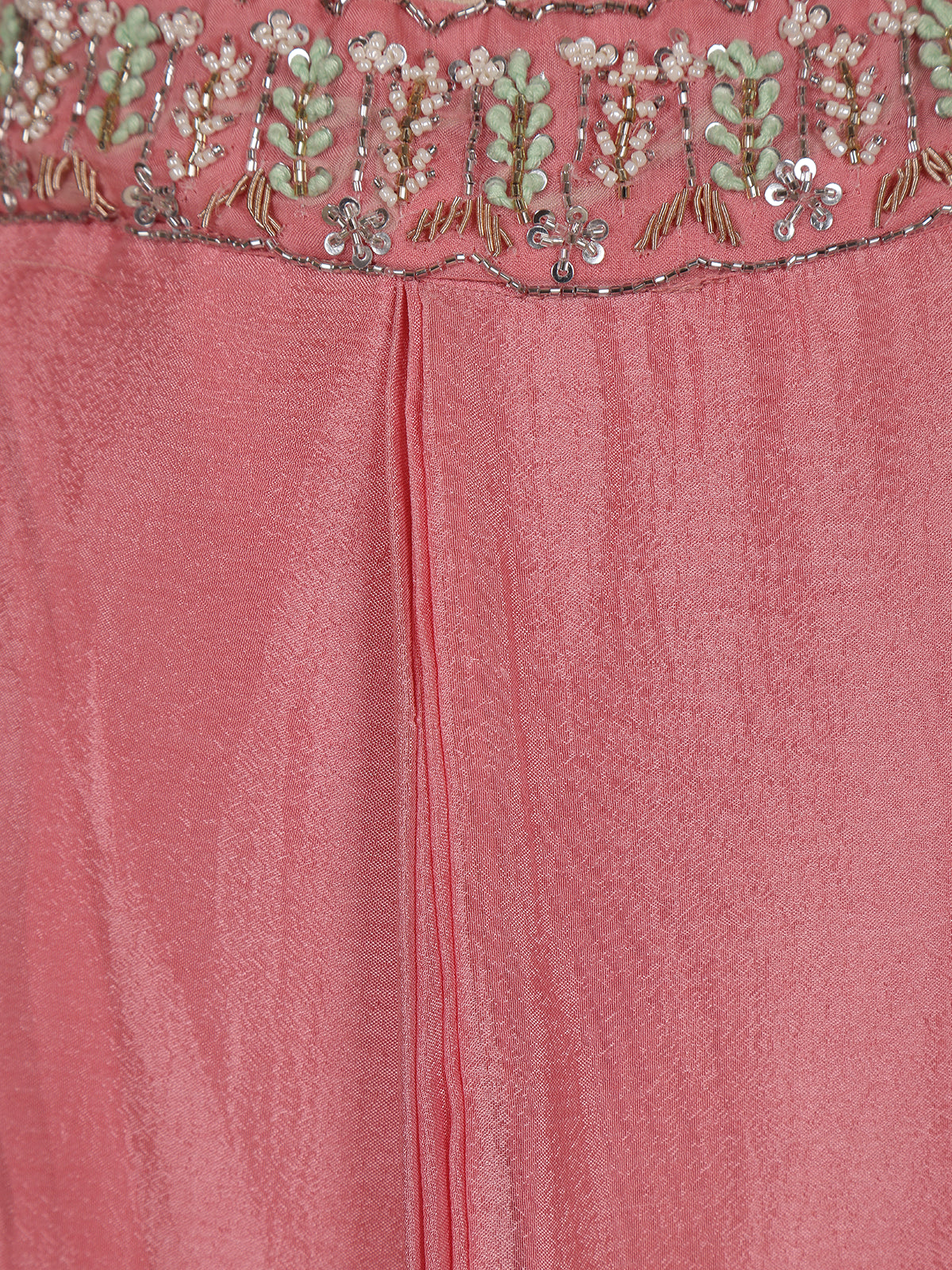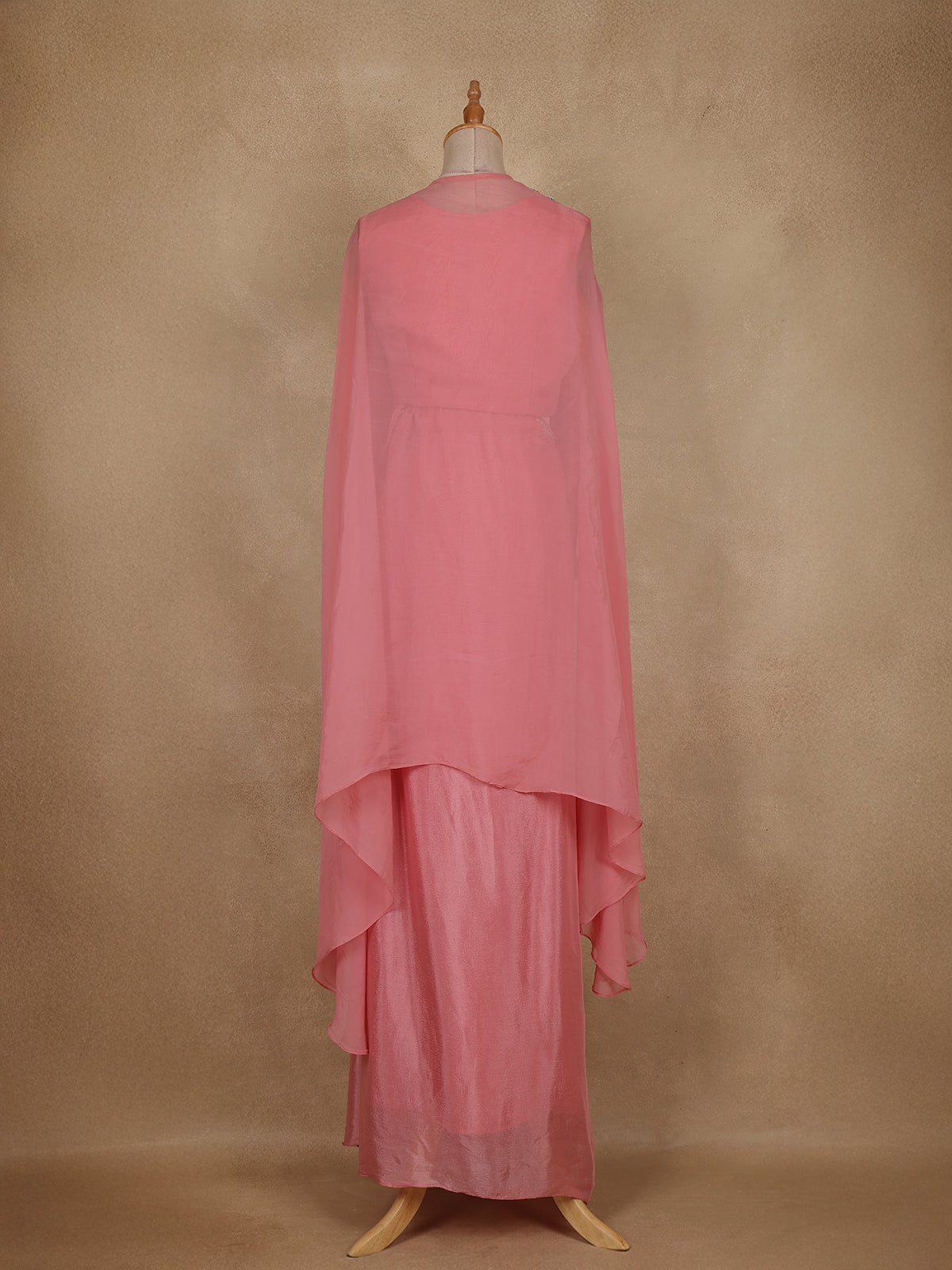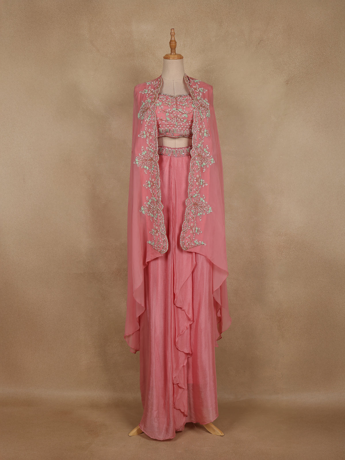 Baby Pink Floral Embroidered Design Georgette Skirt Top with Dupatta