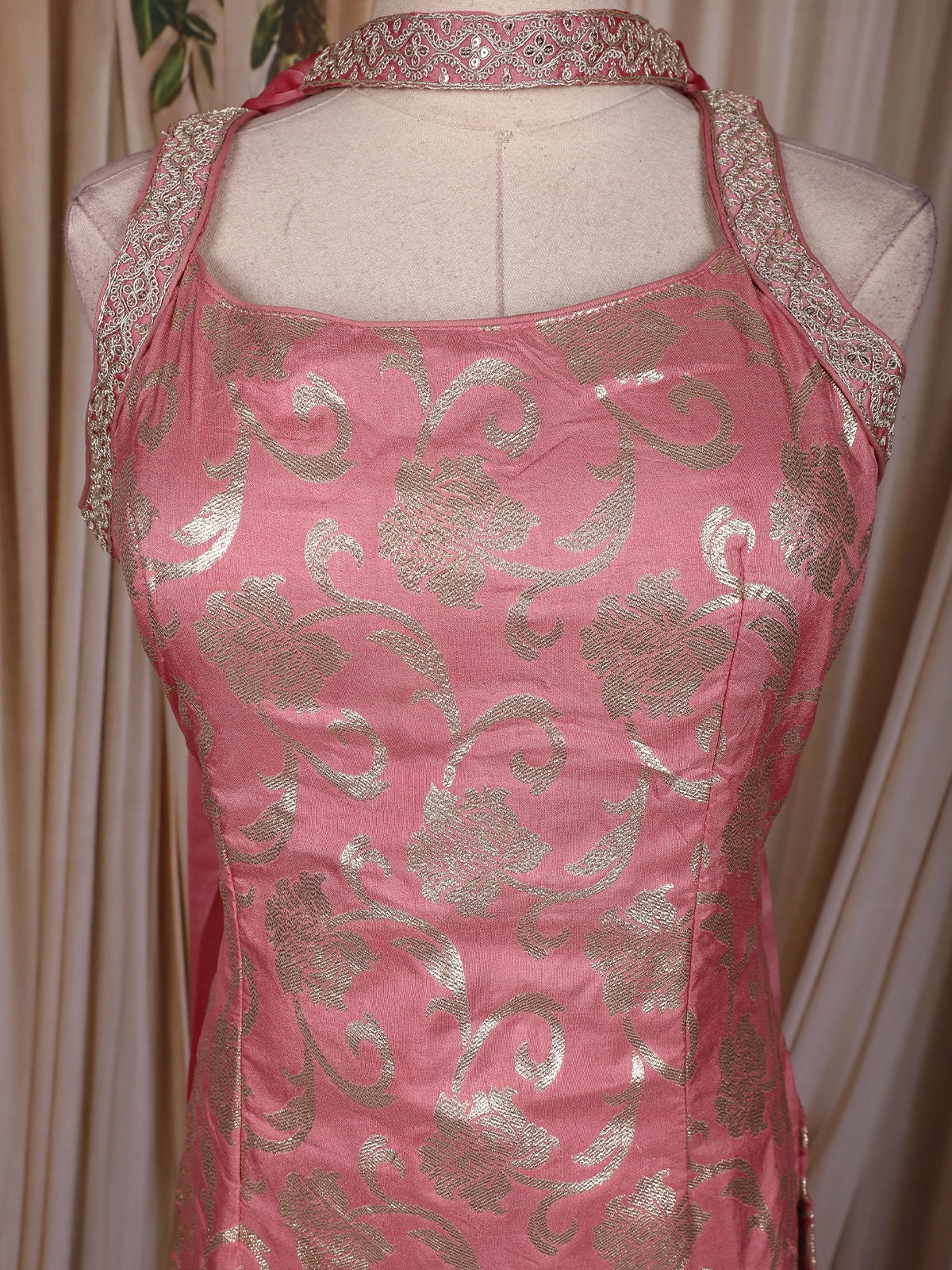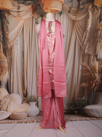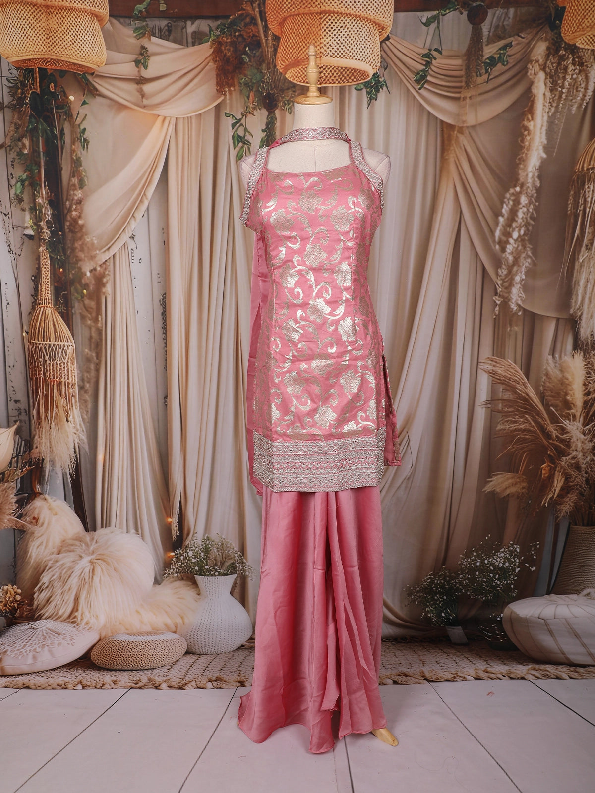 Baby Pink Floral Woven Design Silk Palazzo Suit with Dupatta