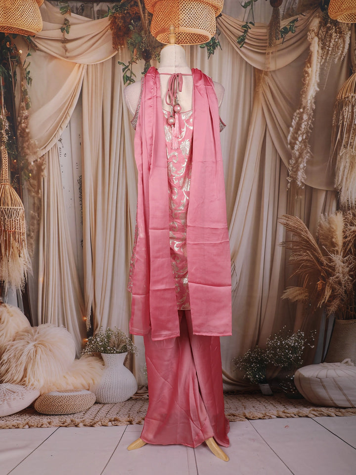 Perfect for weddings, festive soirées, or elegant evening gatherings, this baby pink ensemble captures the essence of sophisticated celebration.