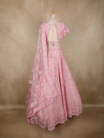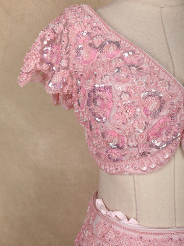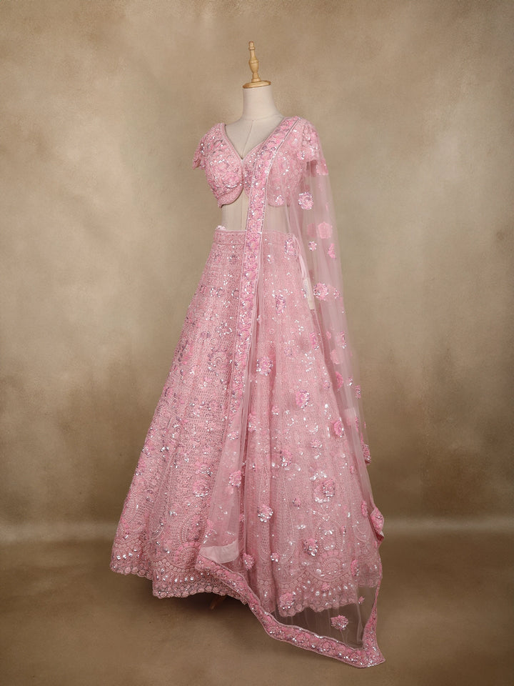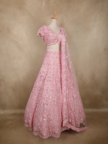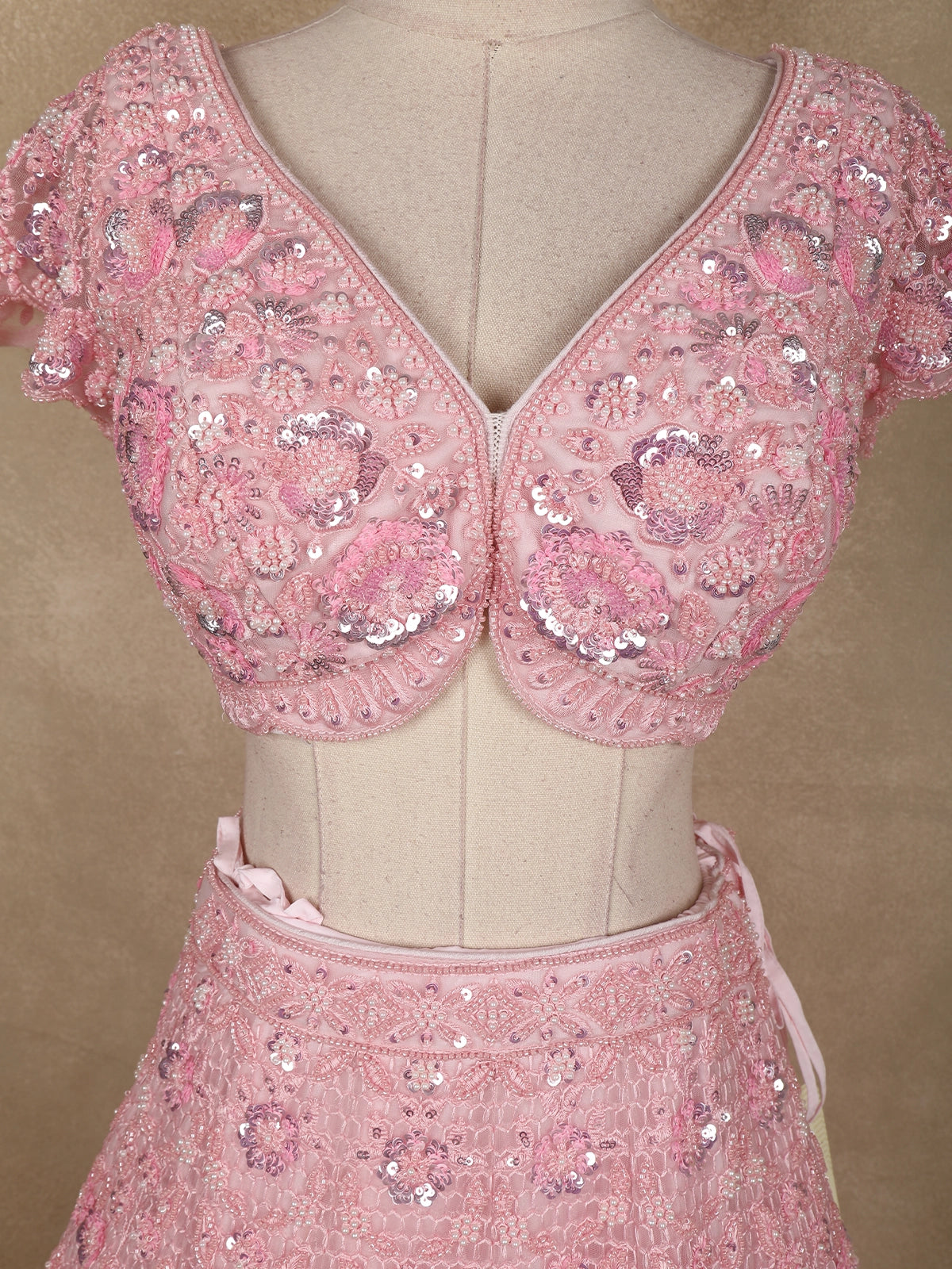 Baby Pink Heavy Sequins and Beads Embroidered Design Net Lehenga With Dupatta