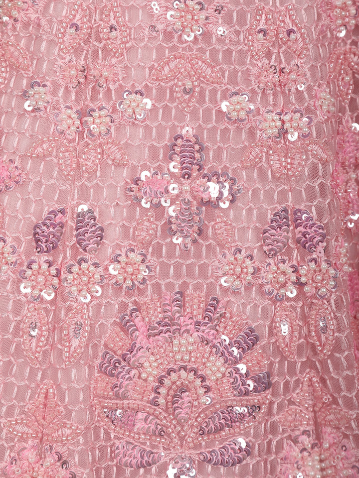 Drape yourself in sheer elegance with this Baby Pink Heavy Sequins and Beads Embroidered Net Lehenga, a creation that beautifully balances romance, craftsmanship, and sophistication. Crafted from premium quality net fabric, the ensemble glimmers with delicate threadwork, beads, pearls, and sequin embellishments intricately laid in floral and geometric motifs across the lehenga and blouse.