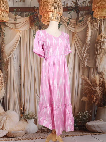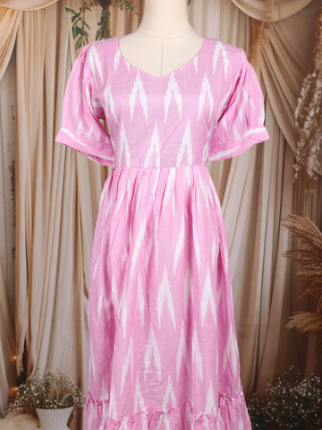 Baby Pink Ikat Printed Design Cotton Kurti