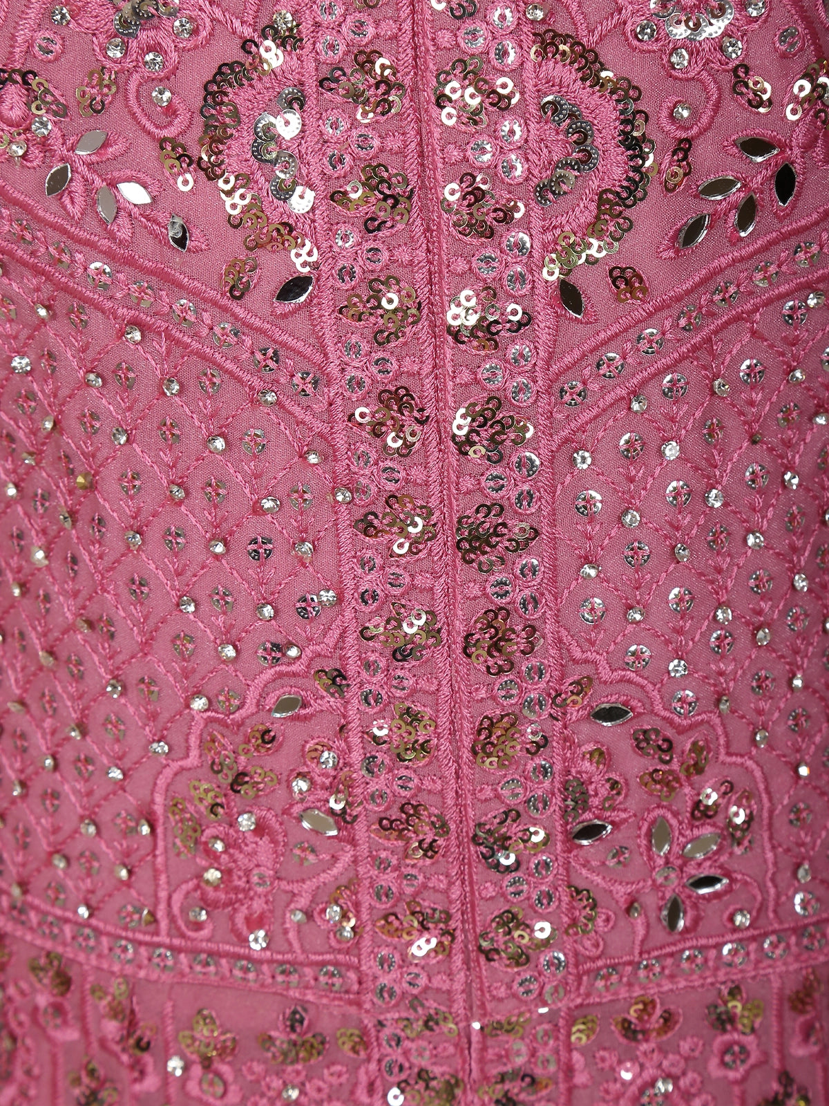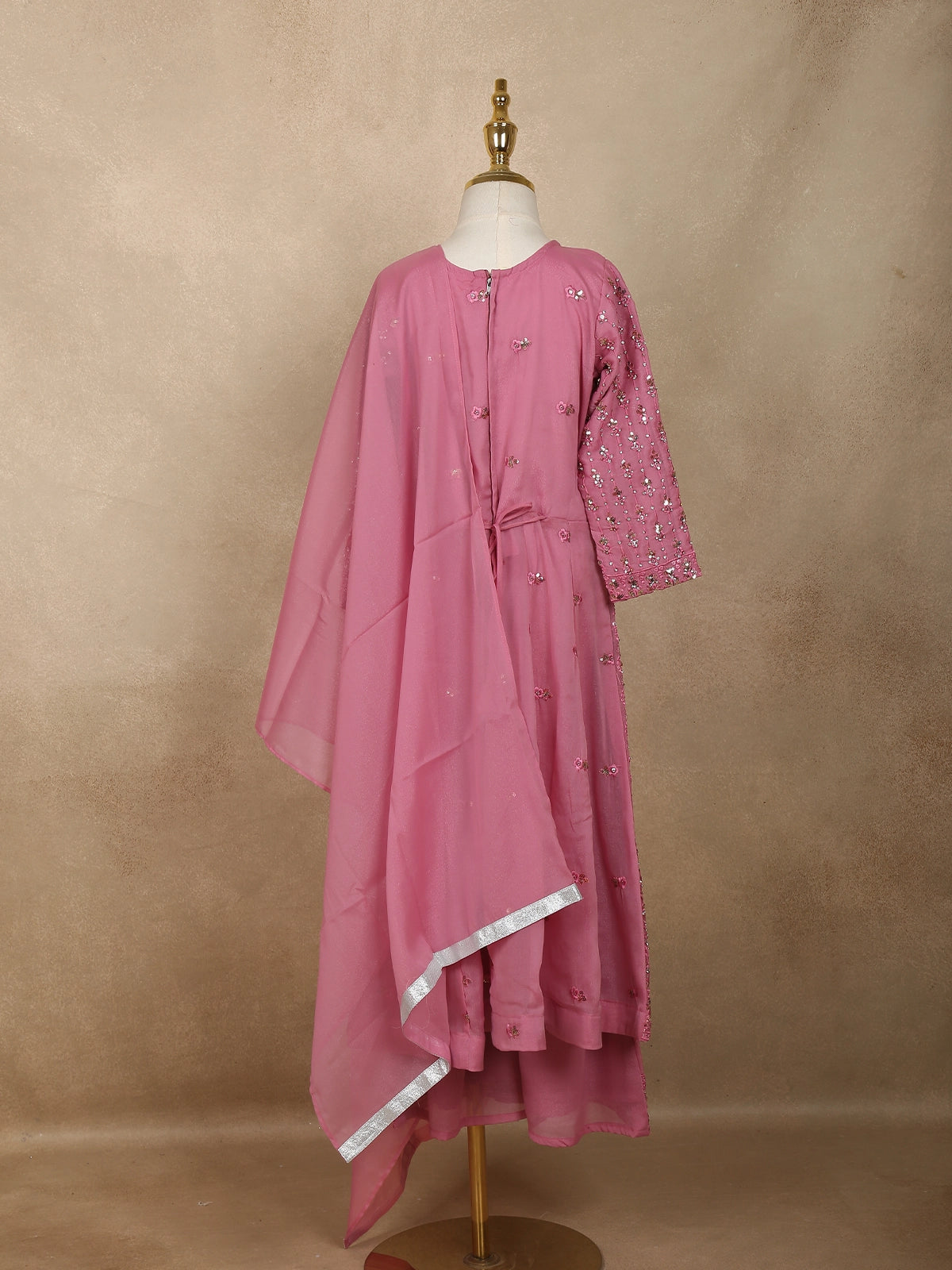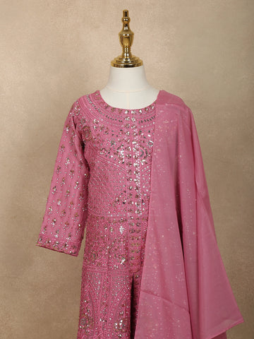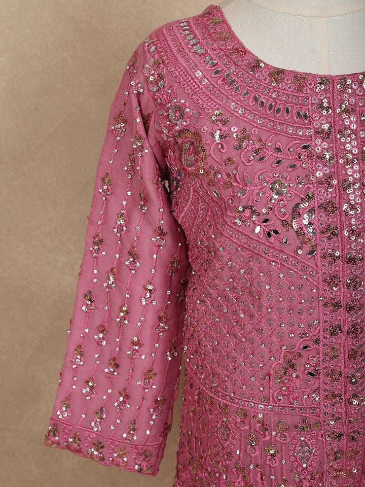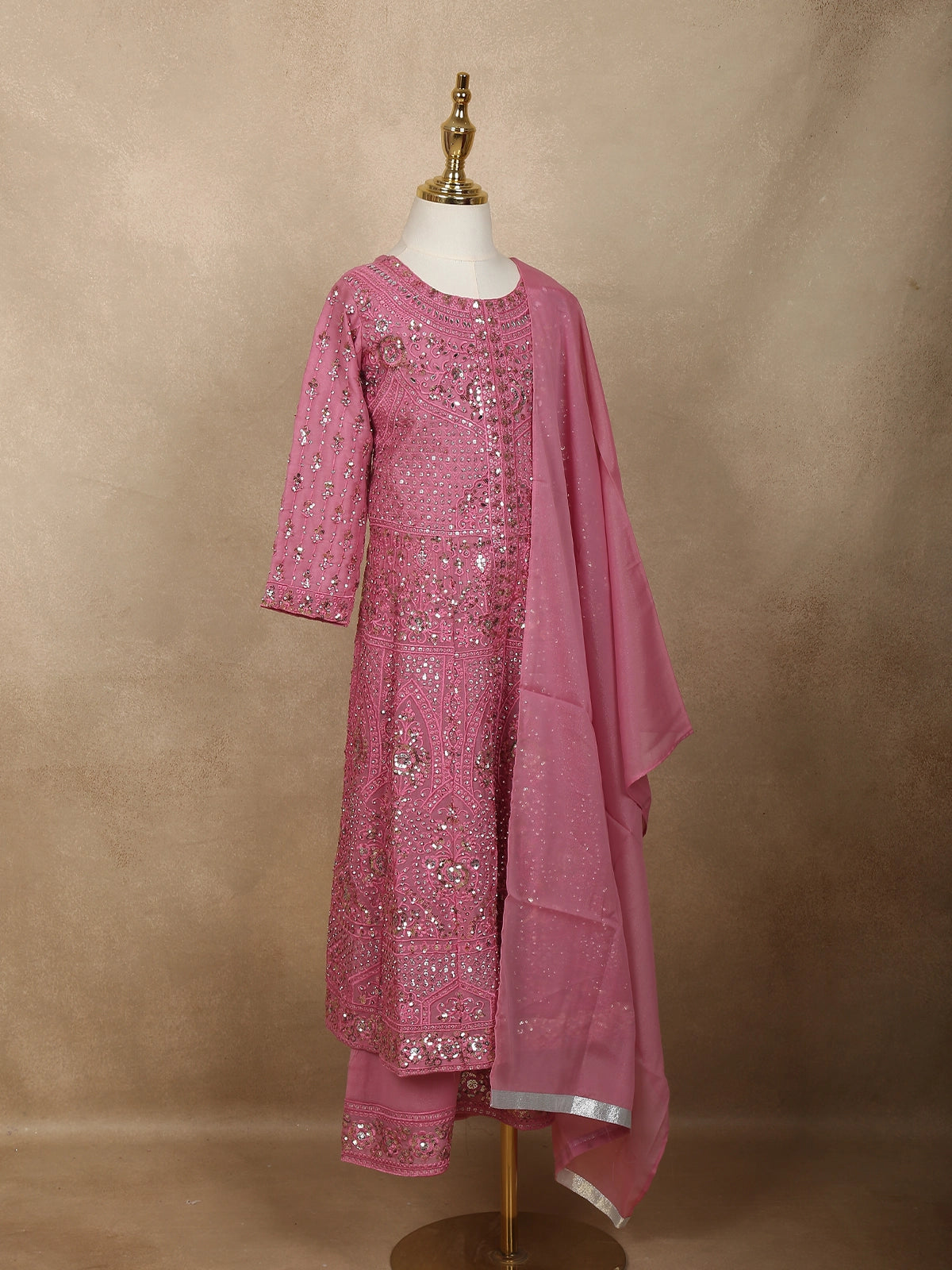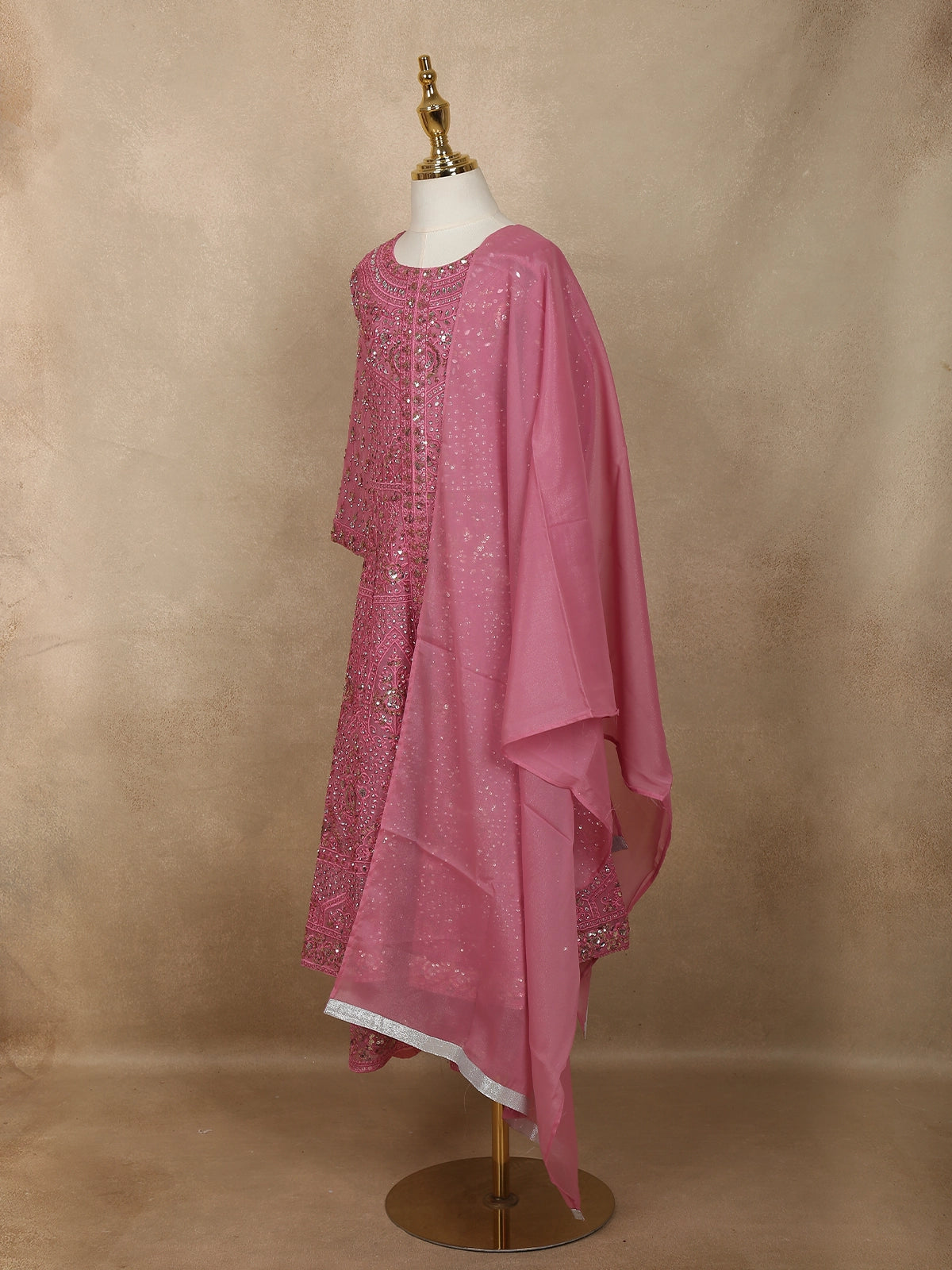 Baby Pink Mirror Embroidered Design Georgette Kids Palazzo Suit