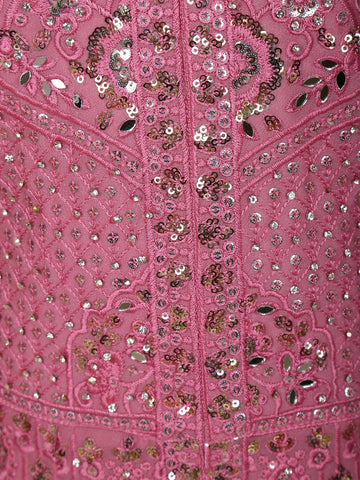 Let your little princess shine with timeless elegance in this Baby Pink Mirror Embroidered Palazzo Suit, crafted to bring sparkle, comfort, and festive charm in every twirl. The soft georgette fabric drapes beautifully, while the intricate all-over mirror and thread embroidery lends a dazzling festive glow that instantly makes this outfit stand out.