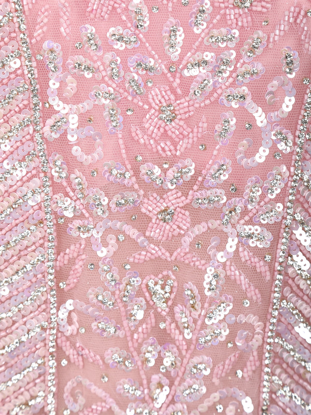 Add a touch of fairytale magic to your celebrations with this Blush Pink Sequin Embellished Net Gown. Designed with a flattering sweetheart neckline and intricate sequin embroidery on the bodice, it brings glamorous sparkle from every angle.