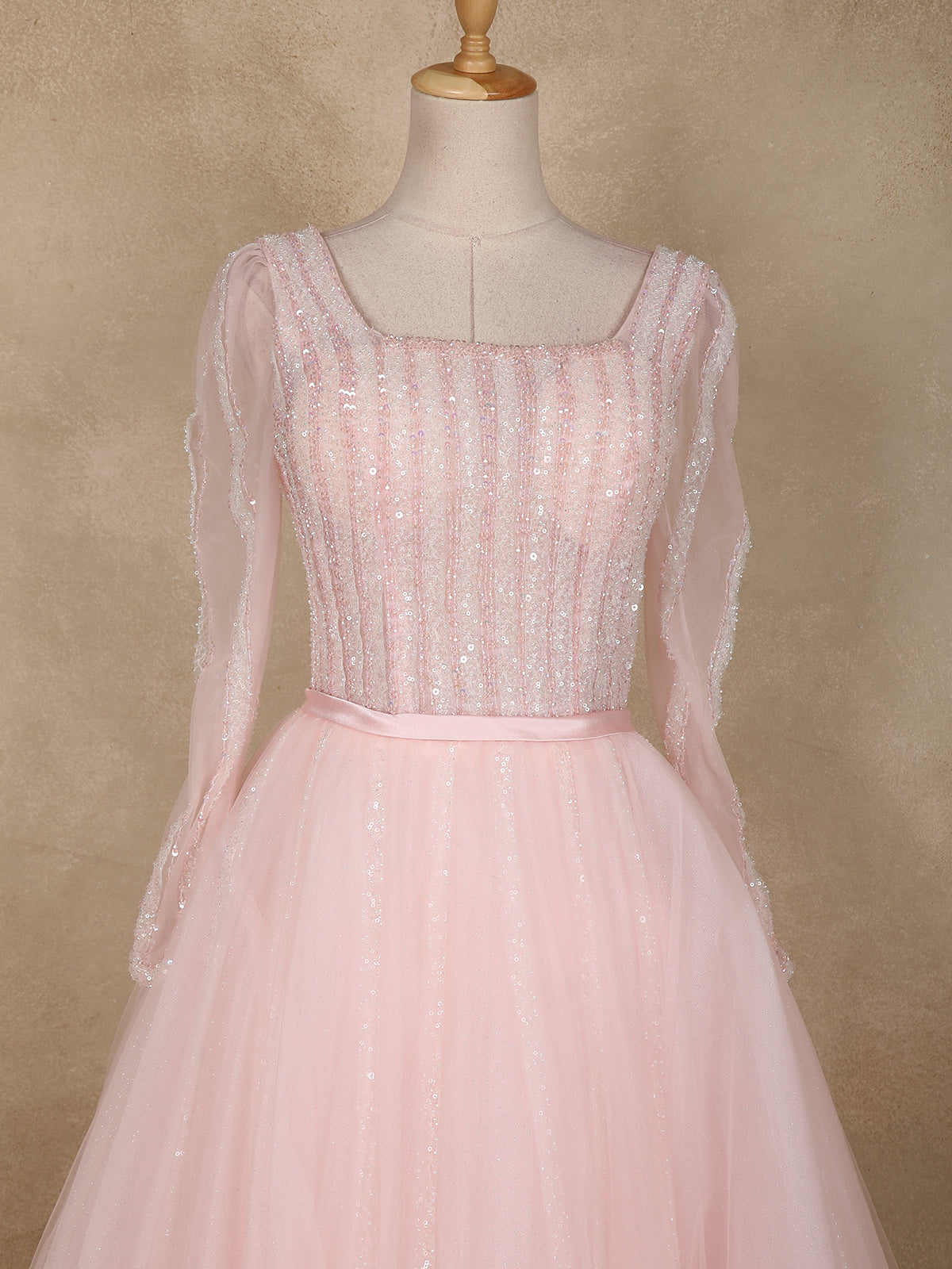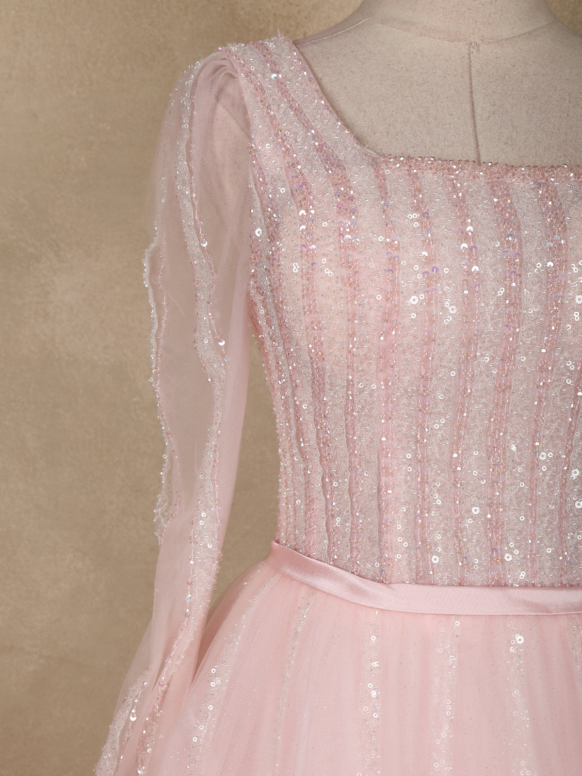 Baby Pink Sequins and Beads Design Net Gown