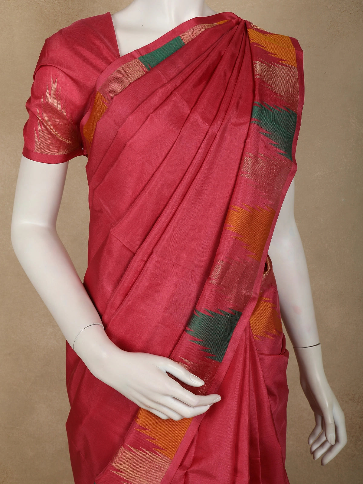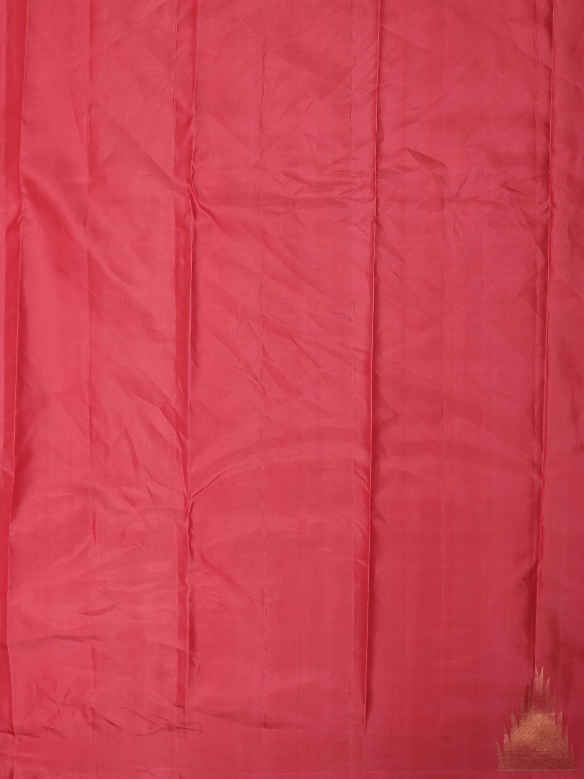 Baby Pink Solid Woven Design Pure Kanchipuram Silk Saree with Temple Zari Border
