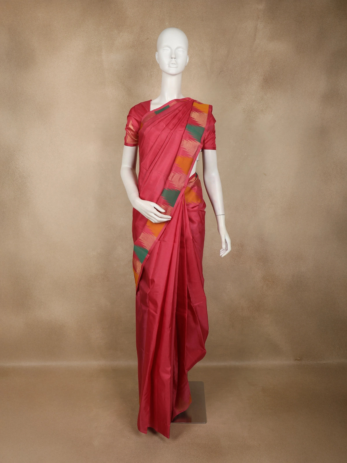 This Baby Pink Solid Woven Design Pure Kanchipuram Silk Saree is a graceful celebration of traditional South Indian artistry and timeless elegance. Crafted from authentic pure Kanchipuram silk, the saree features a rich peacock blue hue that reflects depth, richness, and a royal charm. The finely woven solid body highlights the natural sheen and luxurious texture of the silk, ensuring a regal drape with every pleat.