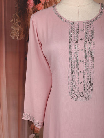 Baby Pink Stone Embellished Chiffon Salwar Suit with Dupatta