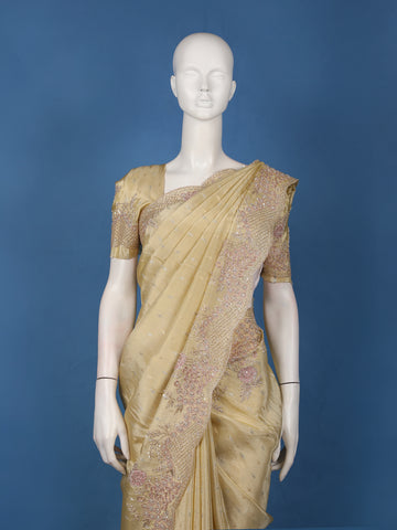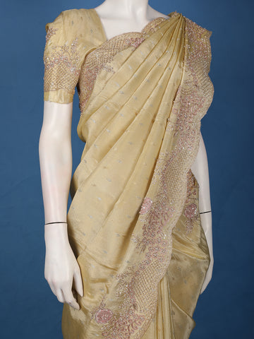 Beige Embellished Design Tissue Silk Saree