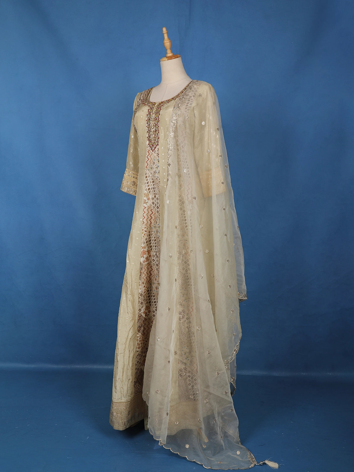 Turn every head in the room with this Georgette Floral Embroidered Party Gown, designed for those who love making an elegant statement. The soft, flowy georgette fabric drapes beautifully, offering a flattering silhouette that moves with grace and ease — perfect for party wear and evening celebrations.