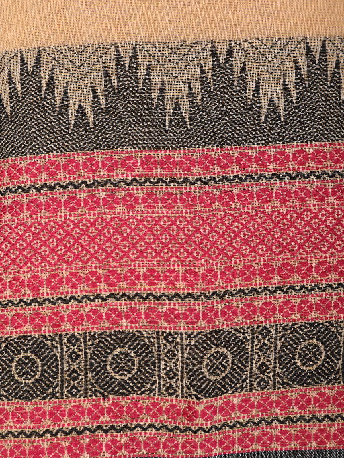 Effortlessly chic and comfortable, this Beige Cotton Saree is a versatile drape that brings together simplicity and subtle elegance. Crafted from breathable cotton, it is designed for everyday ease and style. The saree features a timeless geometric woven design, lending it a touch of artistry and refinement without being overpowering.
