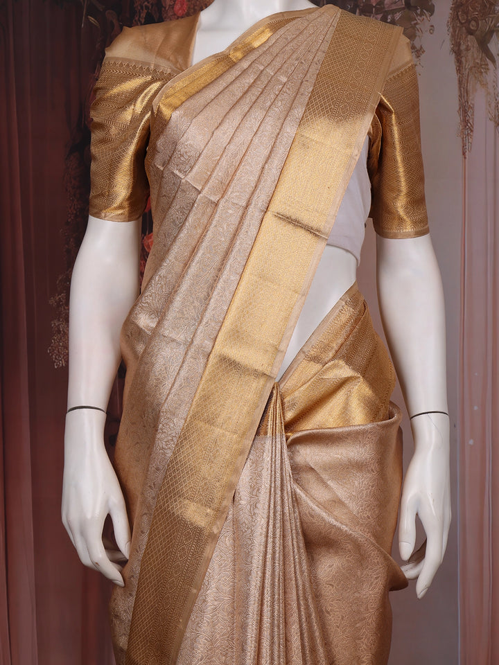 Beige Gold Brocade Woven Kanchipuram Tissue Silk Saree
