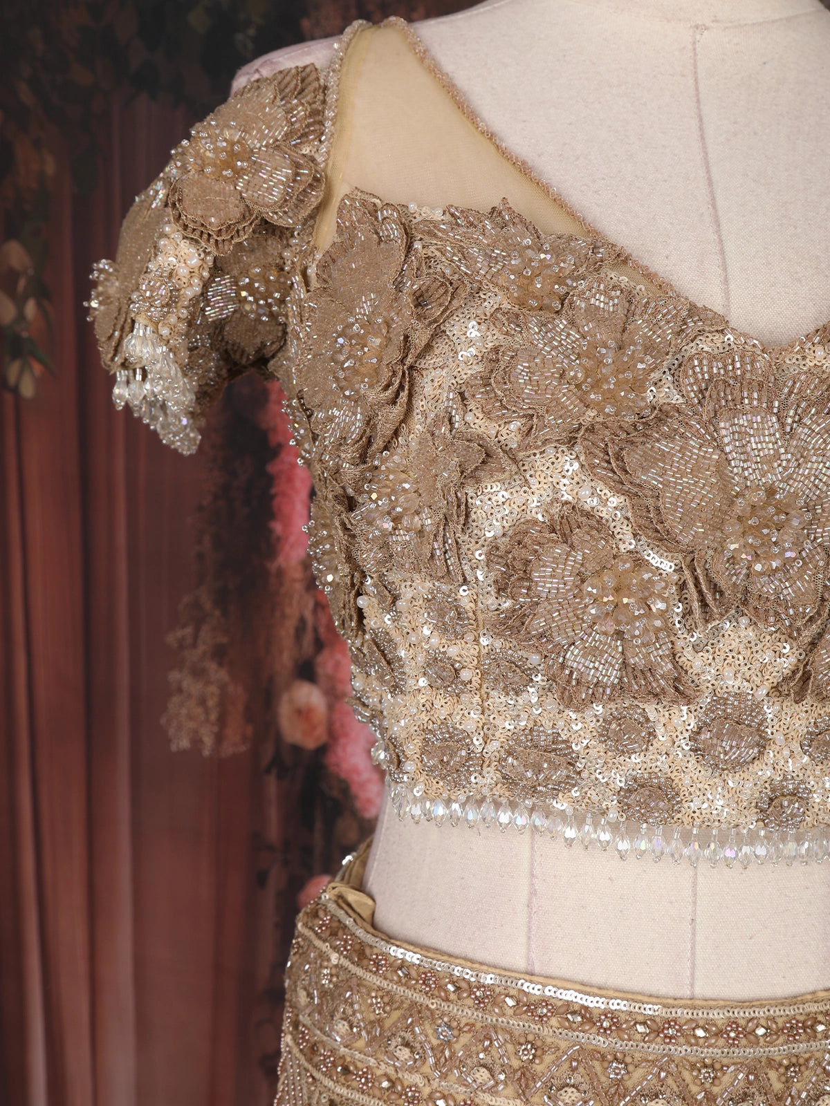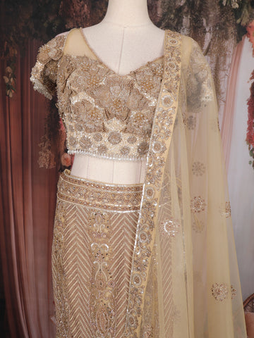 Perfect for wedding receptions, sangeet nights, or grand festive celebrations, this beige lehenga radiates understated opulence — a perfect blend of modern glamour and classic artistry.
