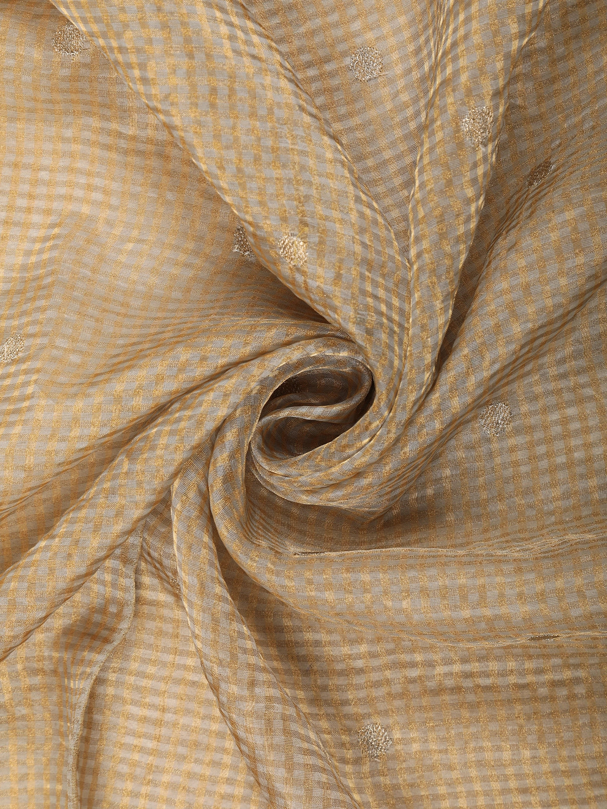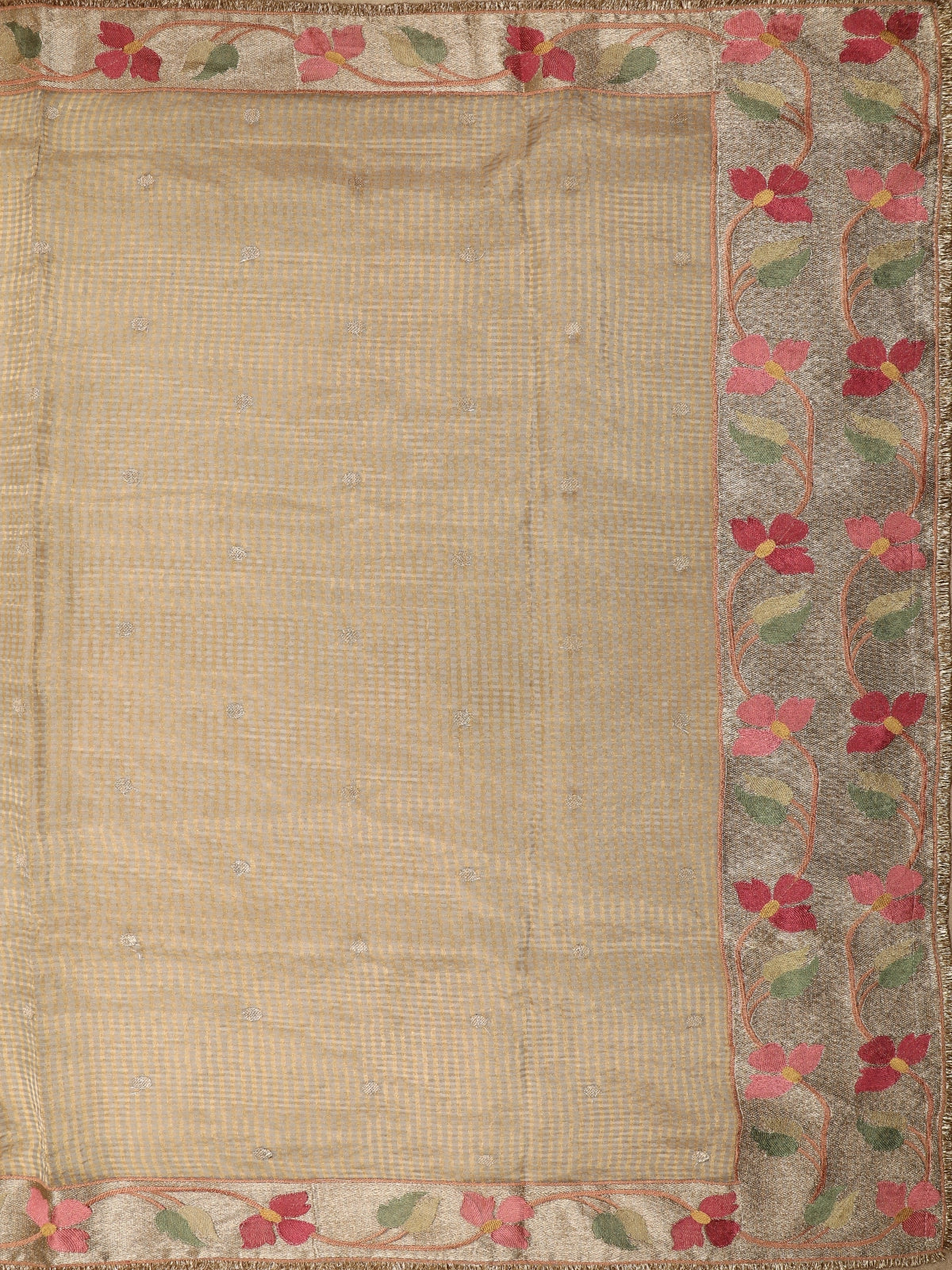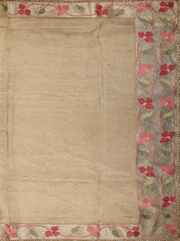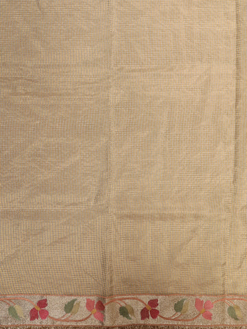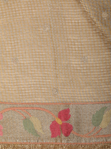 Beige Mini Checked Design Tissue Designer Saree with Floral Border