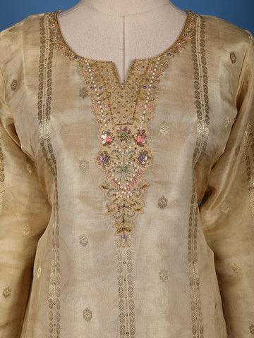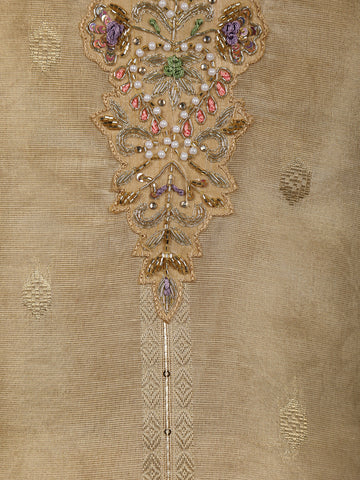 Beige Zari Embroidered Tussar Silk Salwar Suit with Floral Dupatta