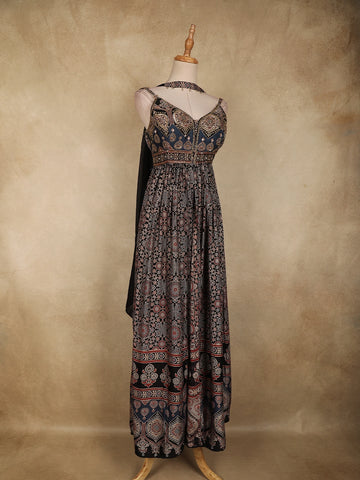Black Ajrakh Print Design Crepe Palazzo Suit with Dupatta