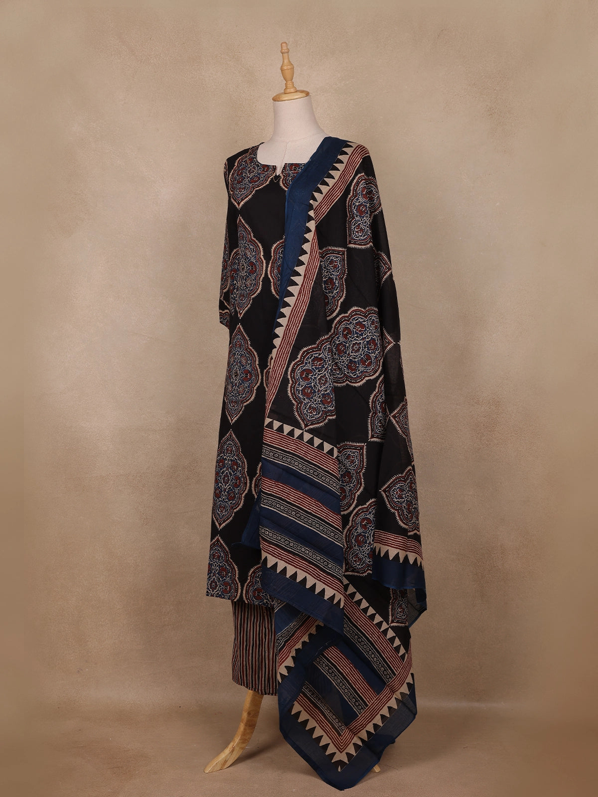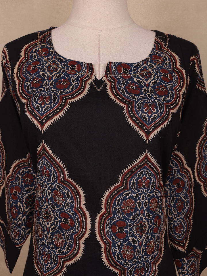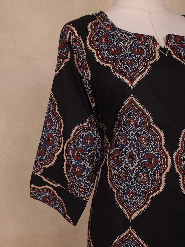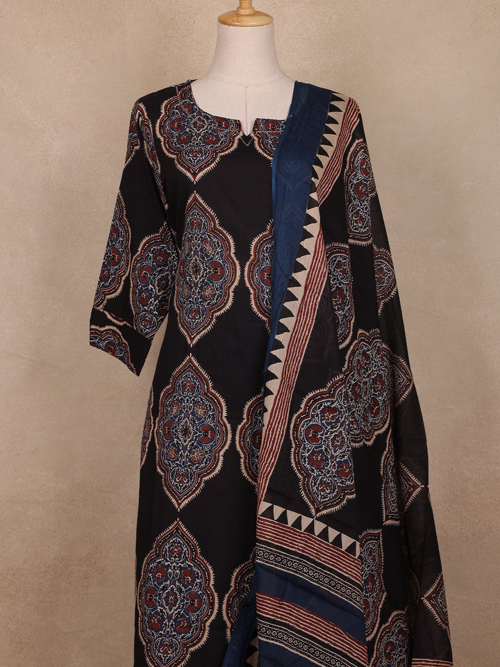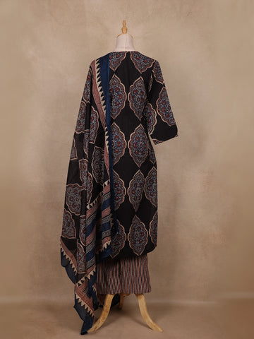 Black Ajrakh Printed Cotton Salwar Suit With Dupatta