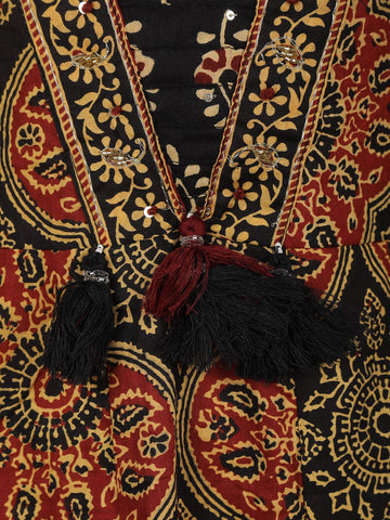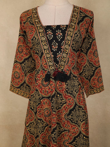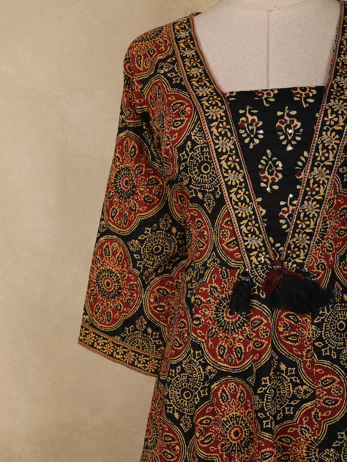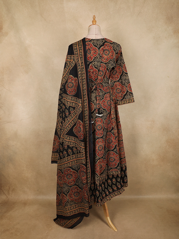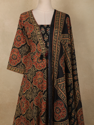 Black Ajrakh Printed Design Cotton Anarkali Salwar Suit with Dupatta
