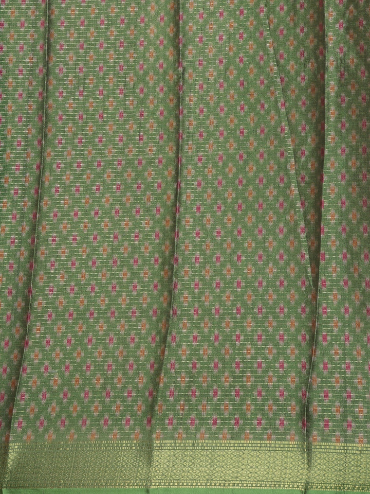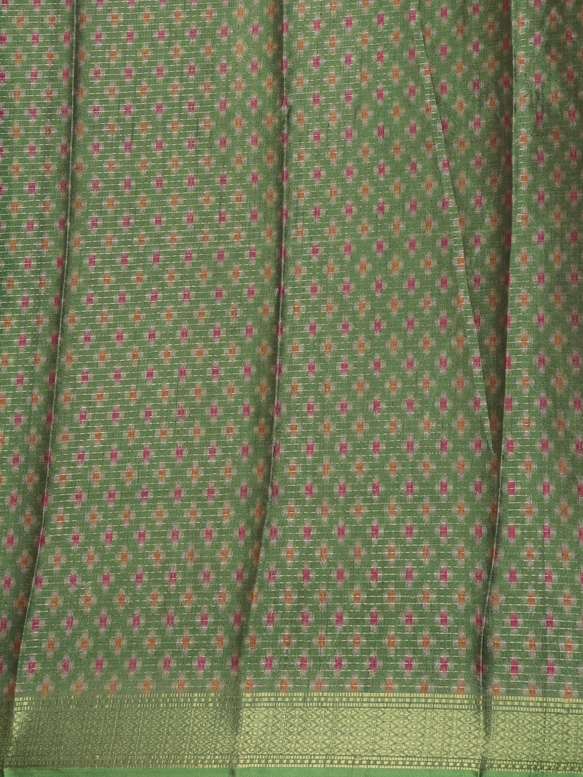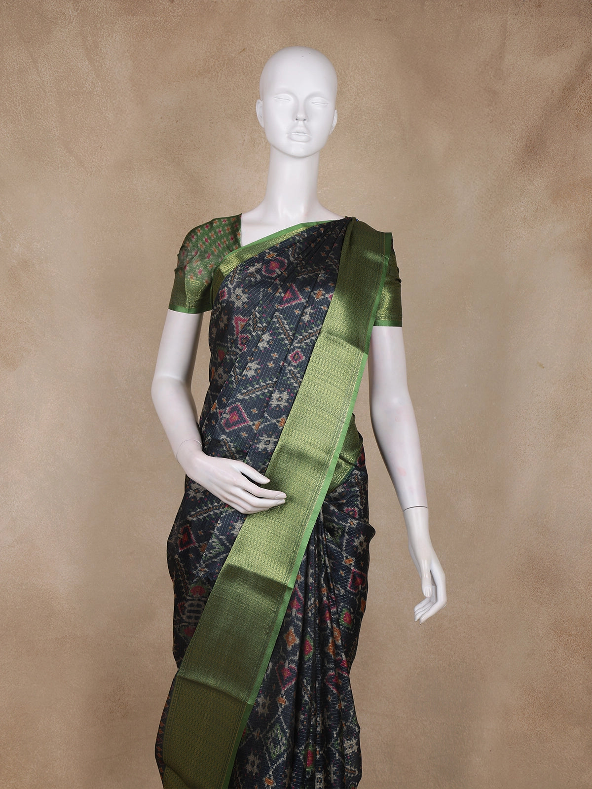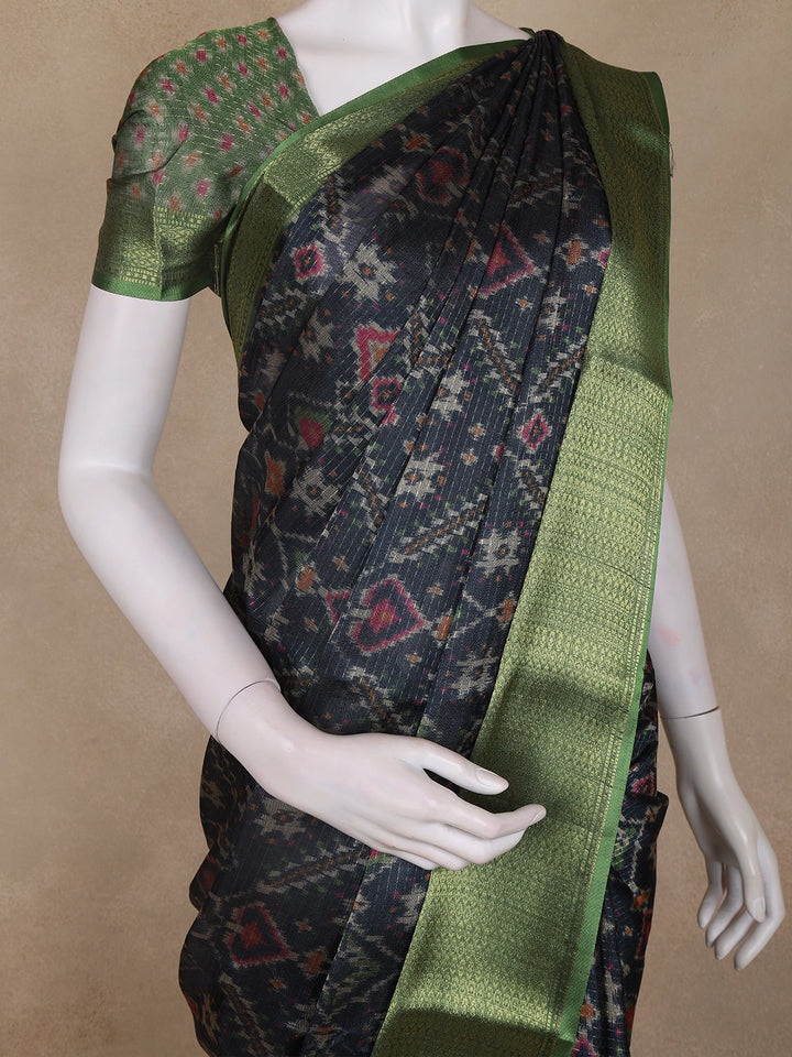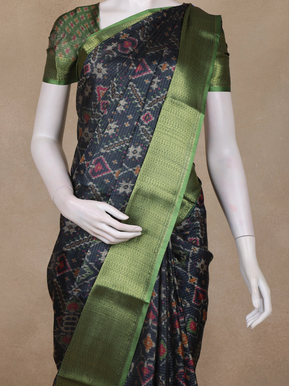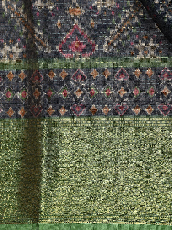 Black and Green Ikat Woven Design Cotton Fancy Saree with Zari Border