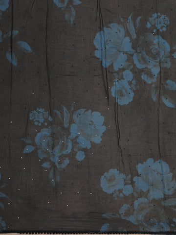 Finishing the saree is a delicate scallop lace edge border, lending a refined and stylish finish that enhances its overall appeal. It comes paired with a printed black blouse piece featuring artistic floral motifs, allowing for both classic and trendy blouse styling options.