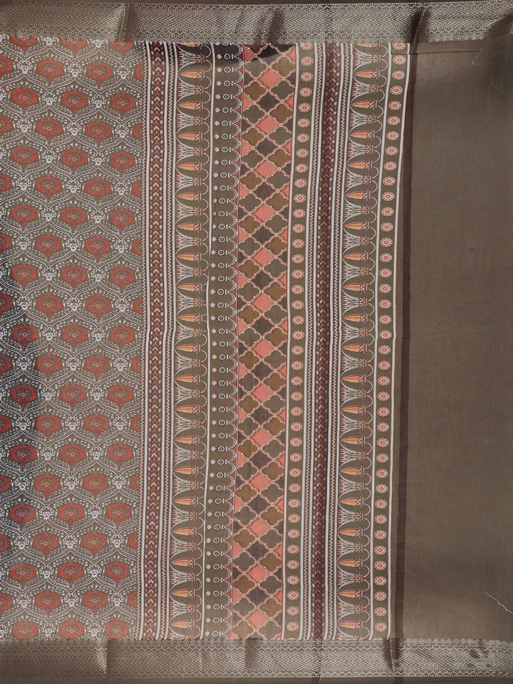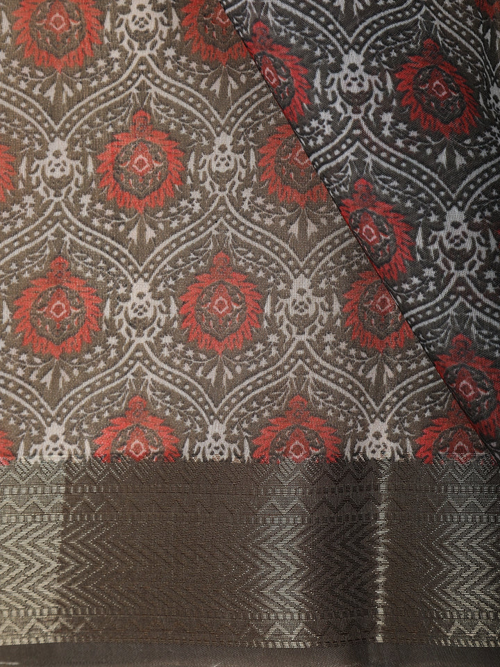 The saree is adorned with a Zari Woven Border, adding a touch of shimmer that enhances the richness of the woven motifs. The pallu carries detailed patterns that blend harmoniously with the body design, giving the saree a balanced and sophisticated finish. Perfect for office celebrations, festive gatherings, family occasions, and cultural events, this saree pairs wonderfully with its matching blouse piece to create a look that is both traditional and stylish.