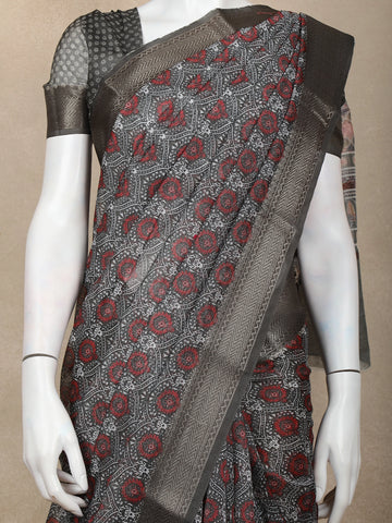Black and Maroon Floral Woven Design Chanderi Cotton Saree with Zari Woven Border