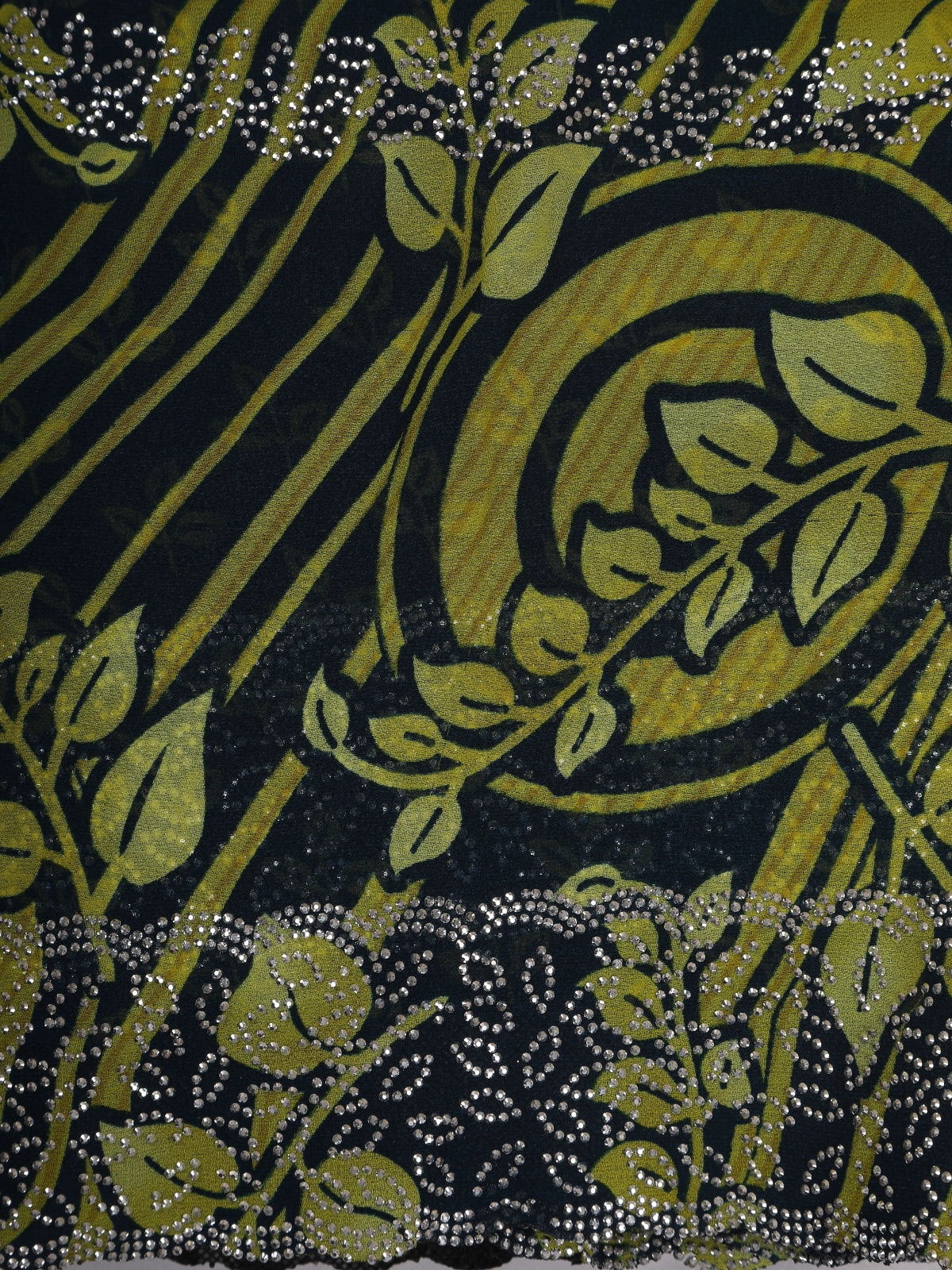 Black and Olive Green Floral Printed Design Chiffon Saree with Stone Embellished Border