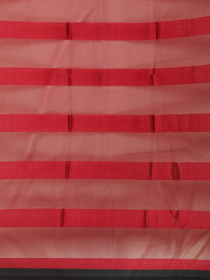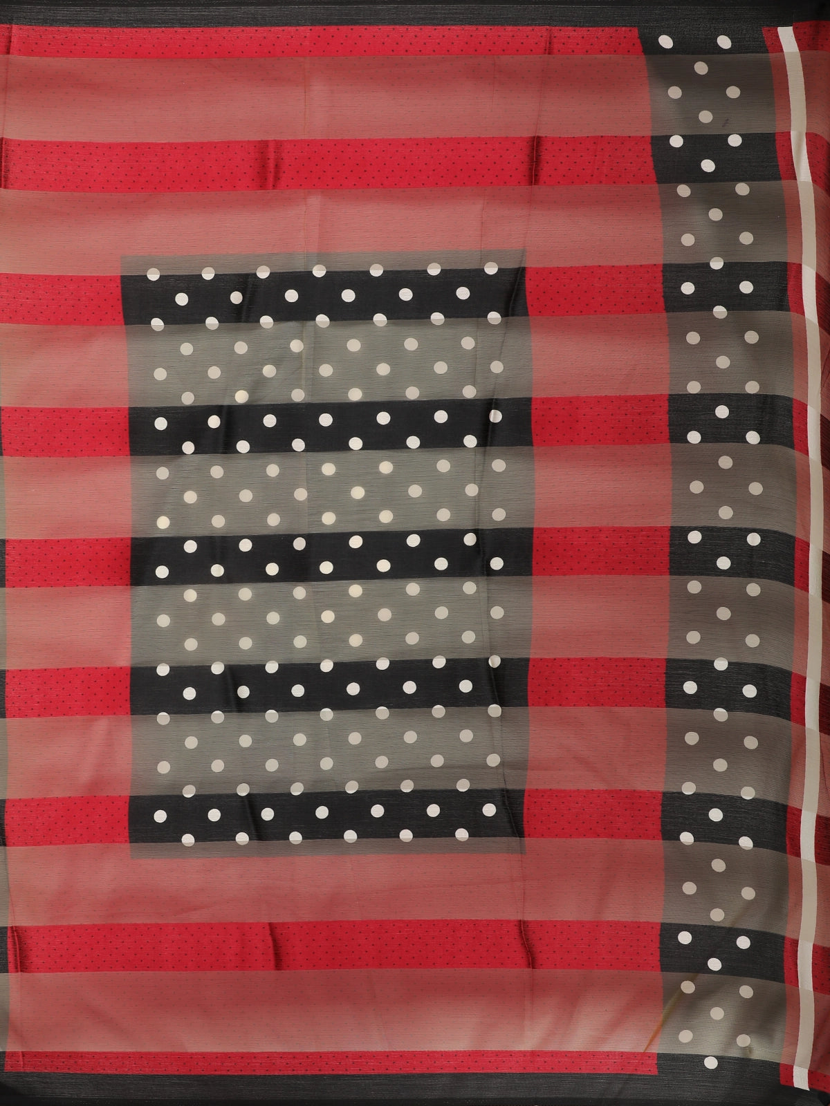 Adding a striking contrast is the maroon border highlighted with black edging, which frames the saree perfectly and brings depth and balance to the overall design. The saree comes paired with a matching maroon blouse featuring short sleeves, enhancing the sophisticated finish and highlighting the border detailing.