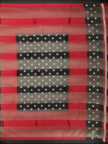 Black and White Abstract Printed Design Chiffon Saree with Contrast Maroon Border