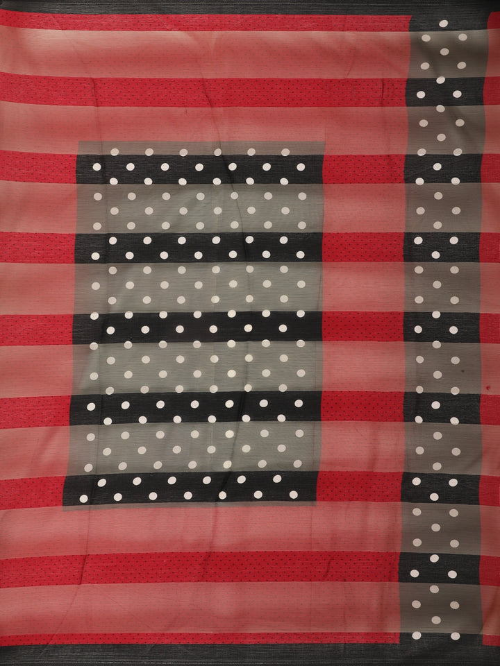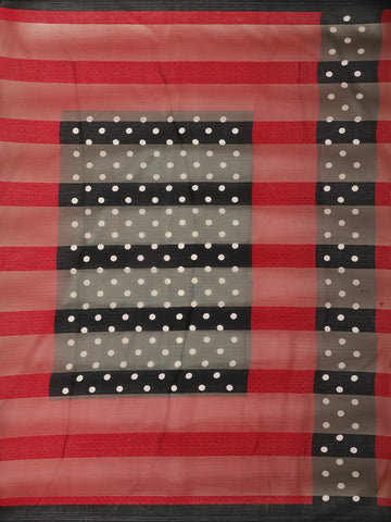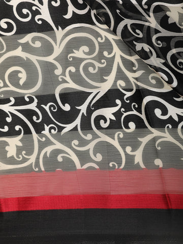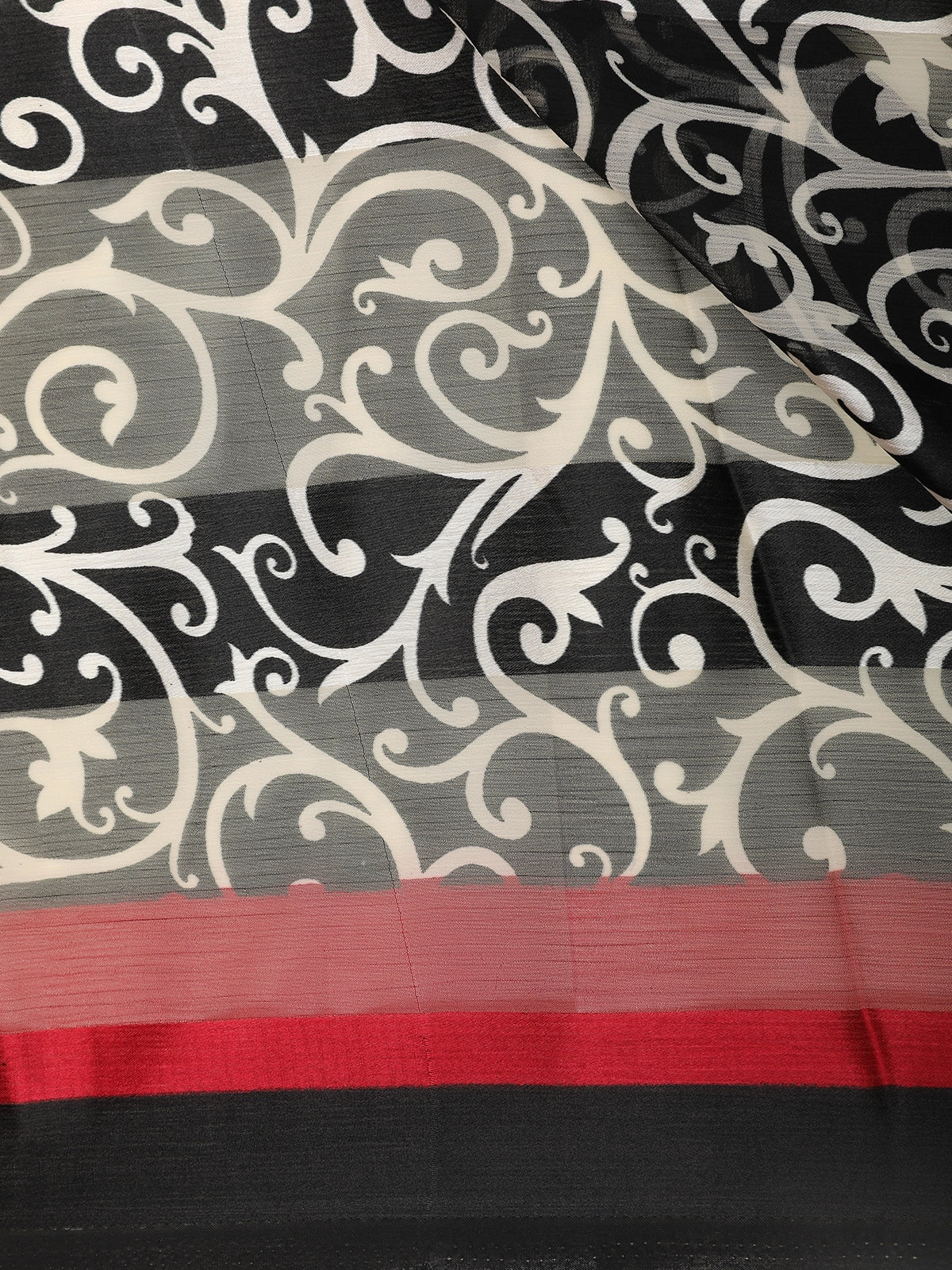 Black and White Floral Printed Design Chiffon Saree with Contrast Maroon Border