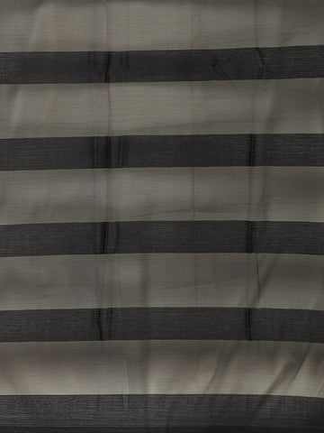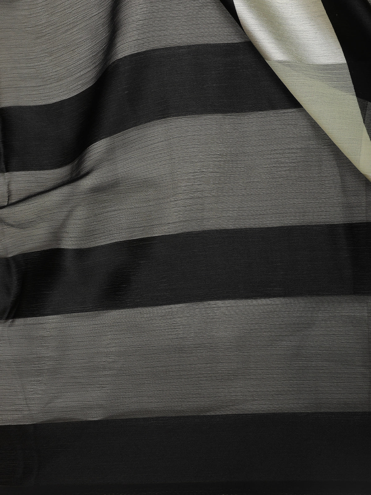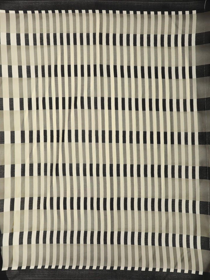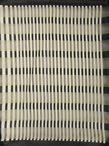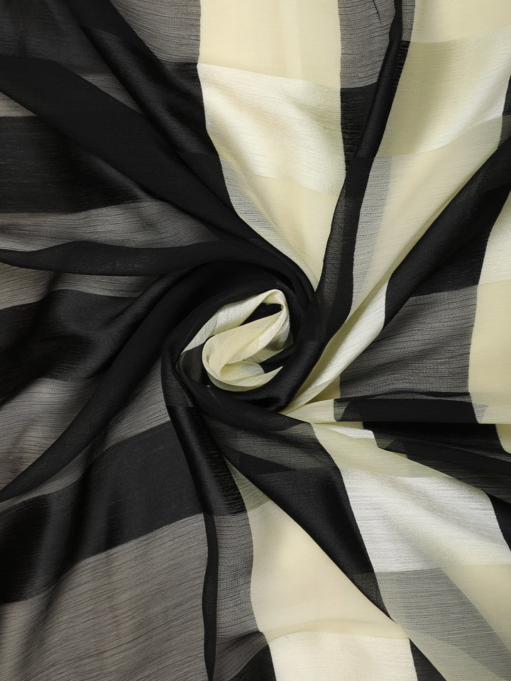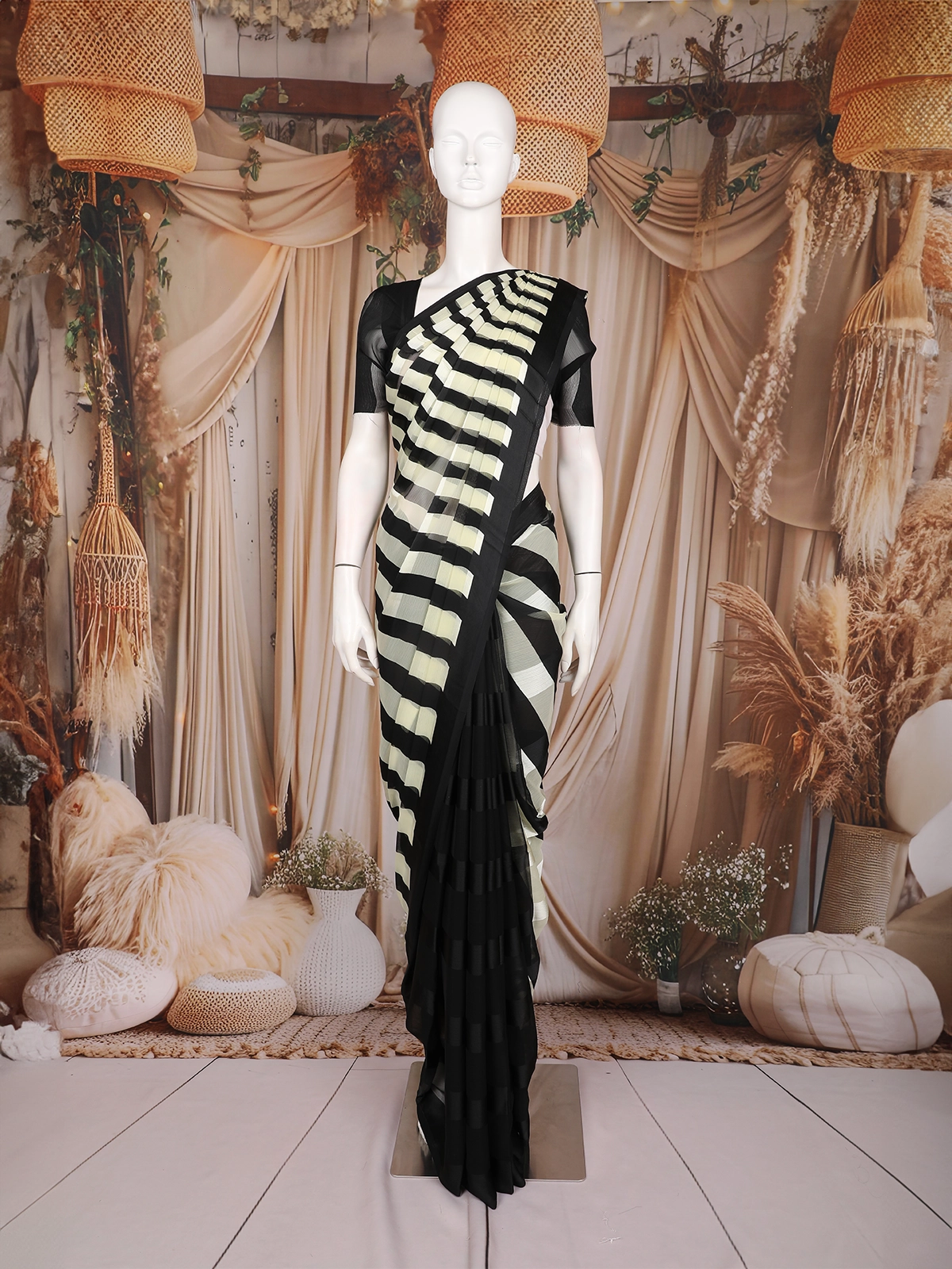 Black and White Striped Printed Design Chiffon Saree with Contrast Border