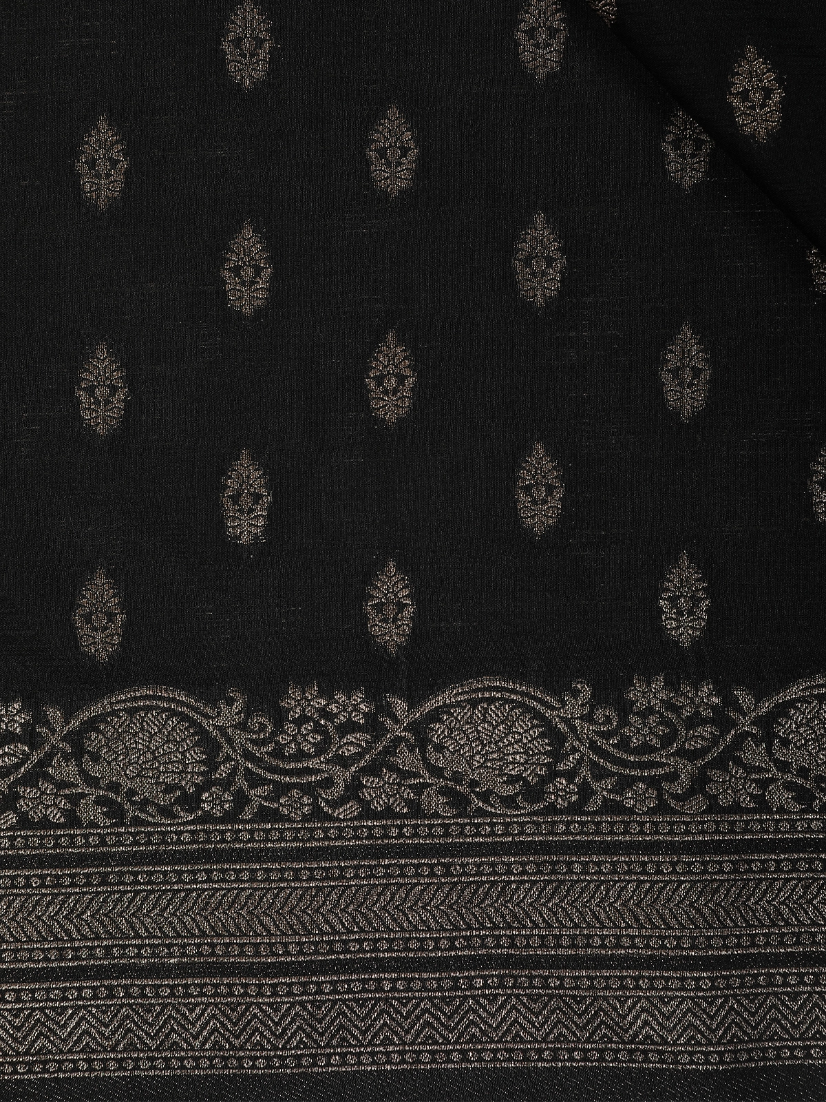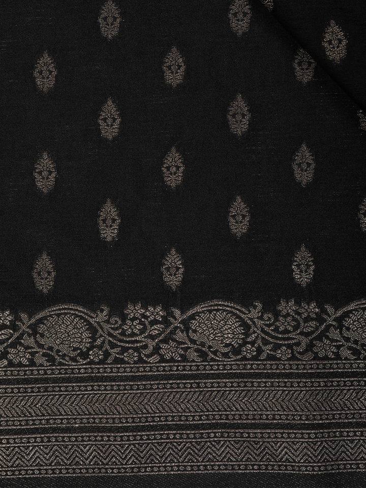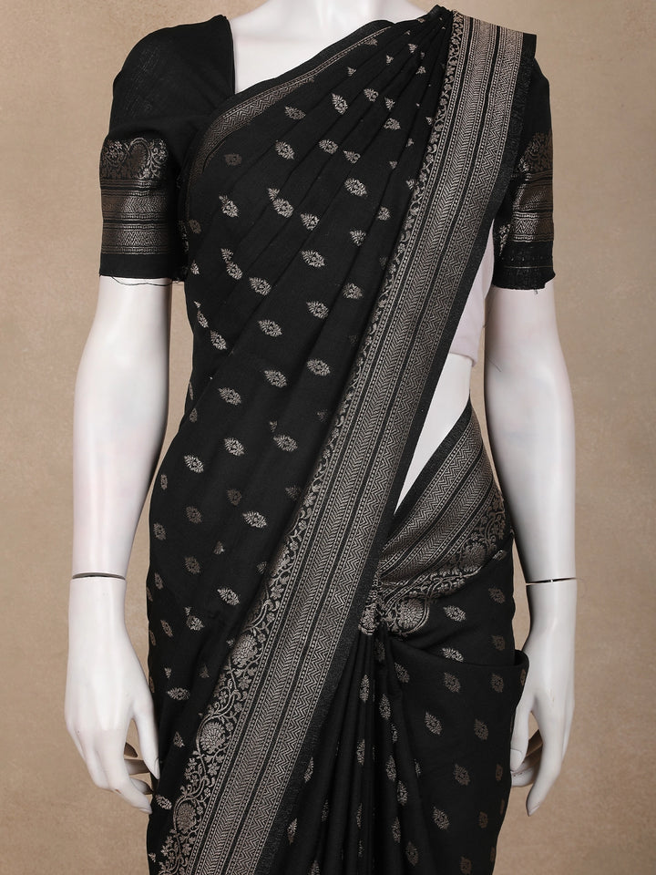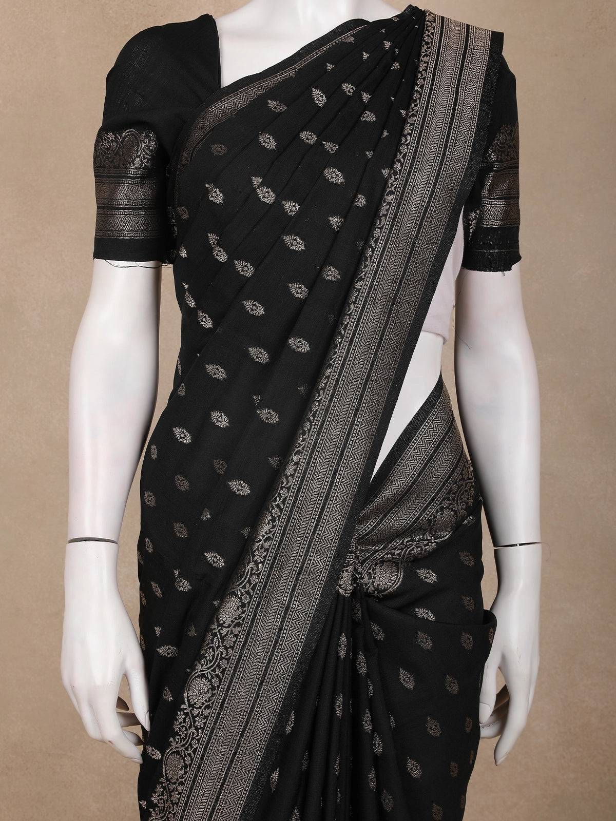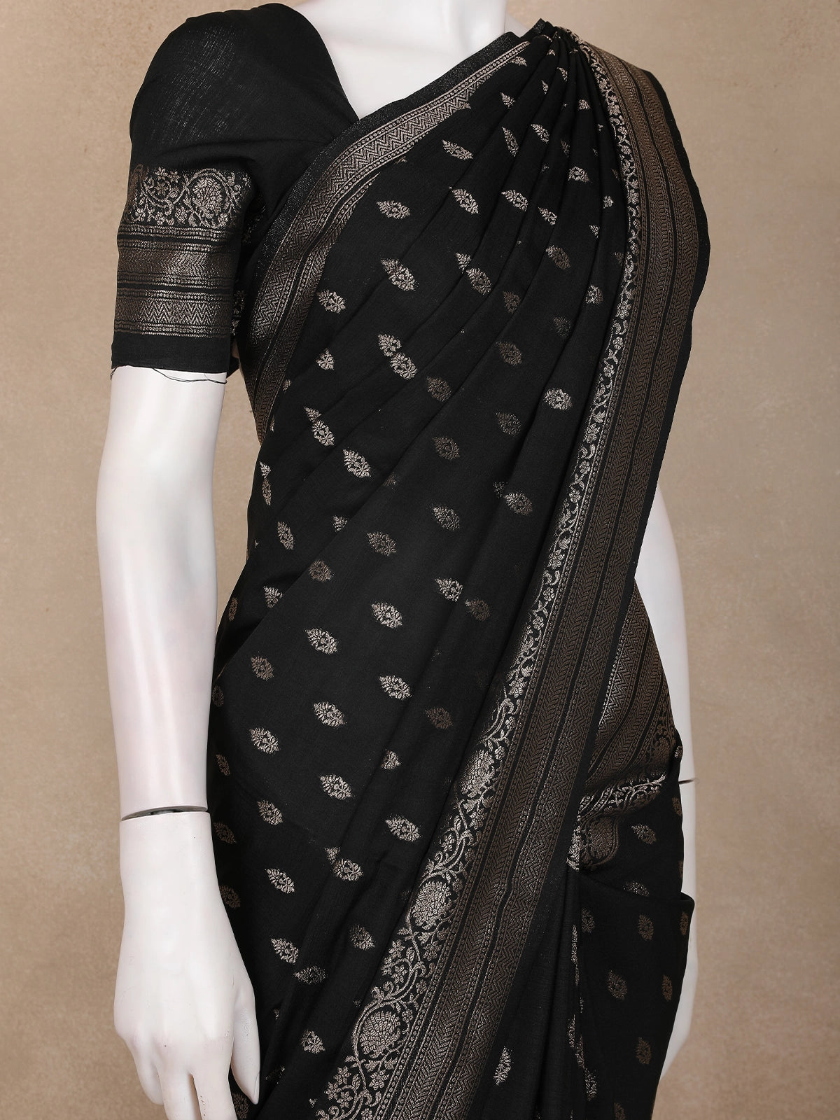 Black Butta Woven Raw Silk Saree with Floral Zari Border