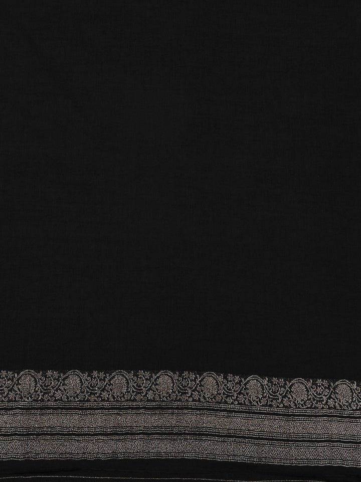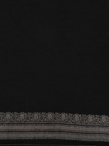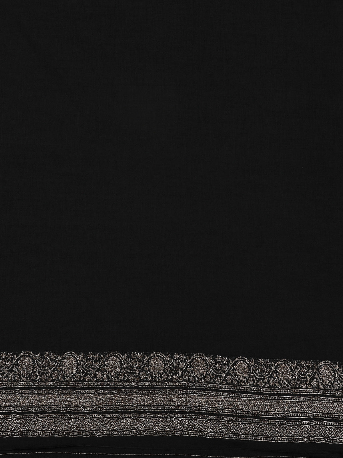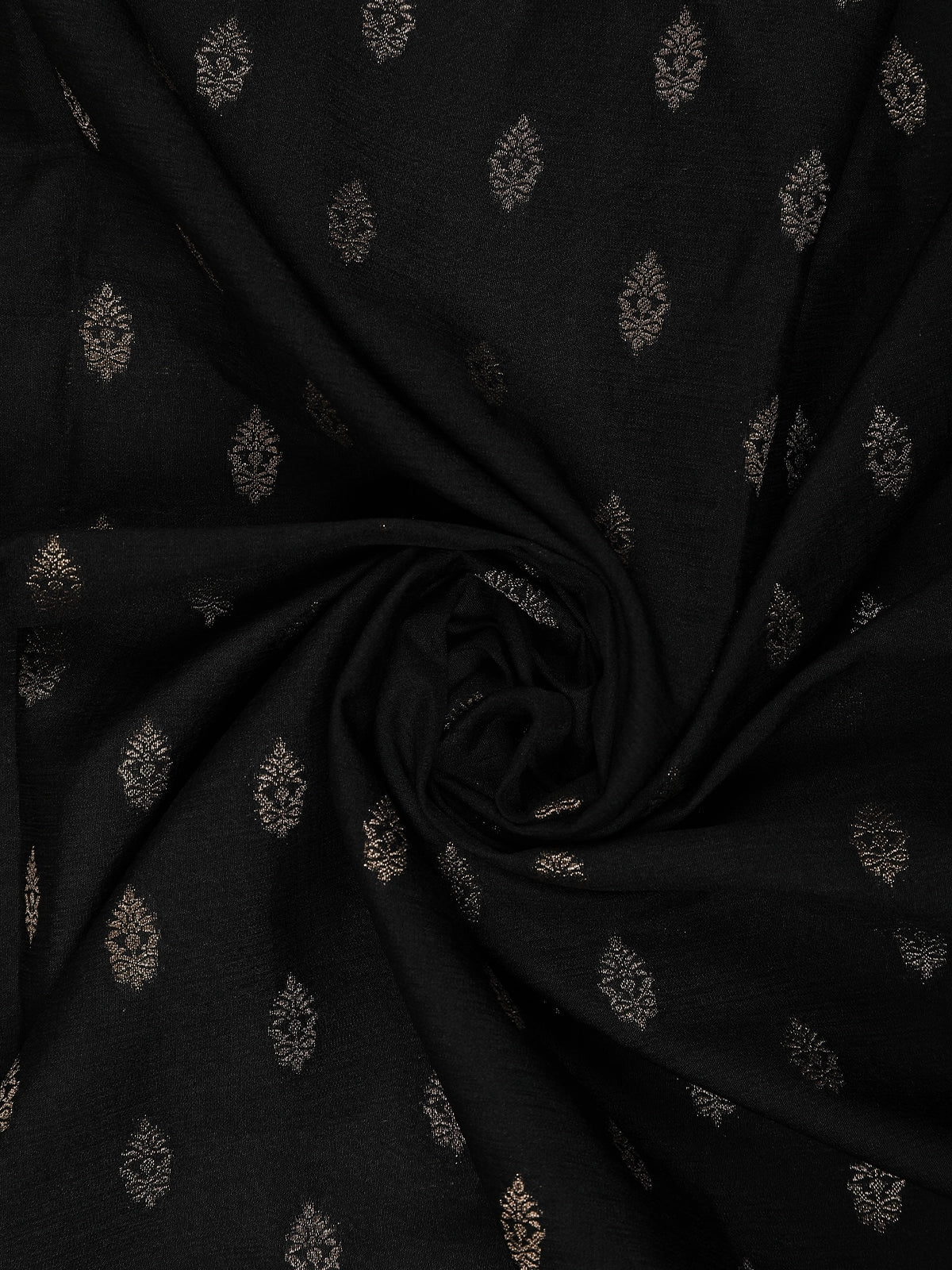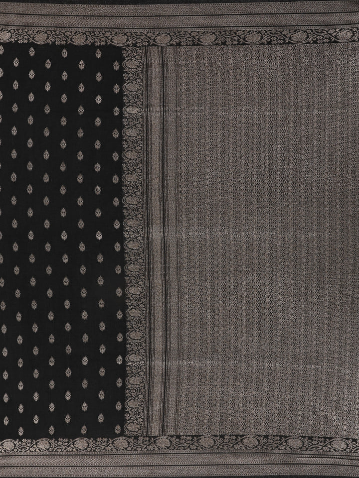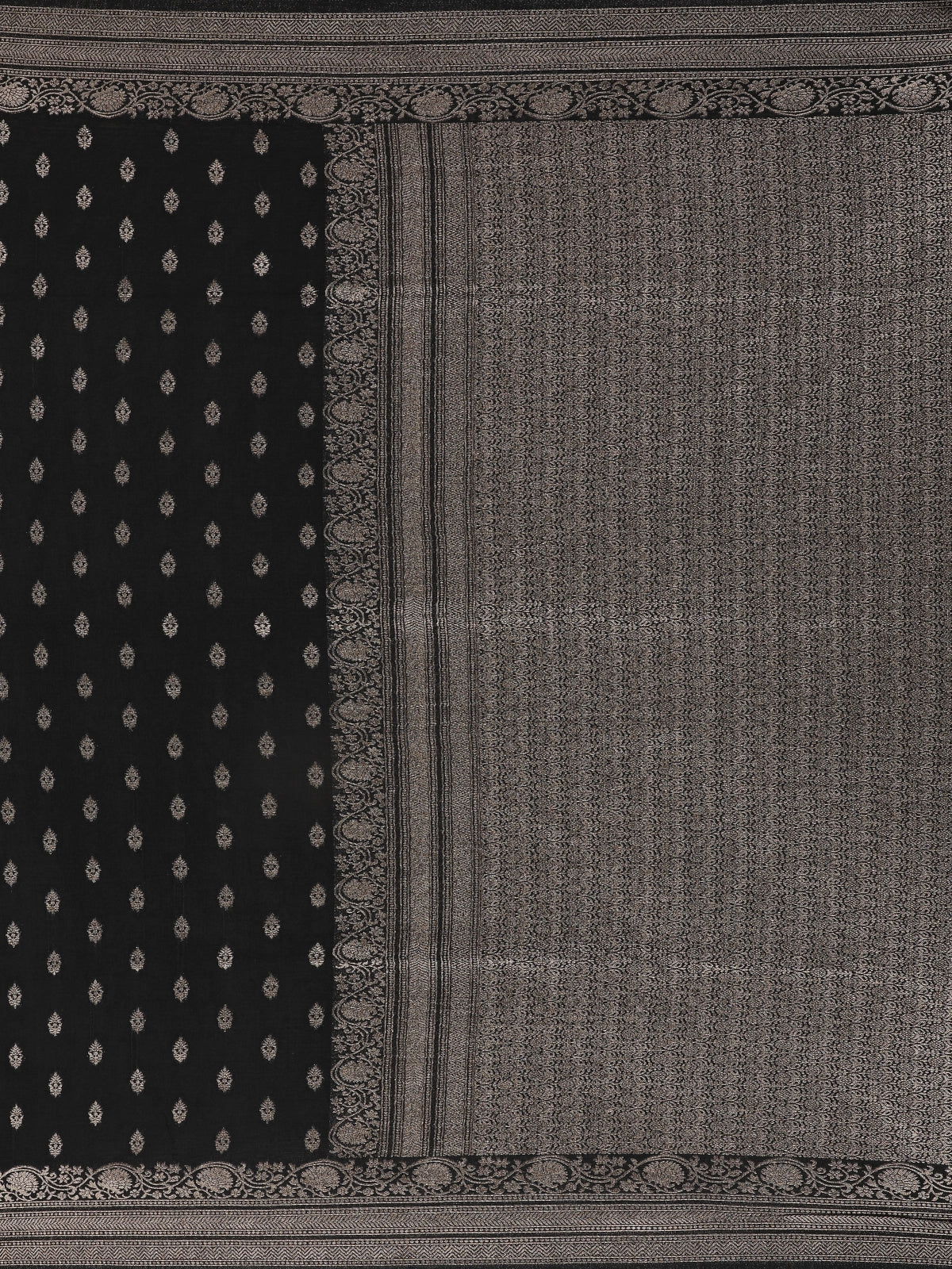 Black Butta Woven Raw Silk Saree with Floral Zari Border