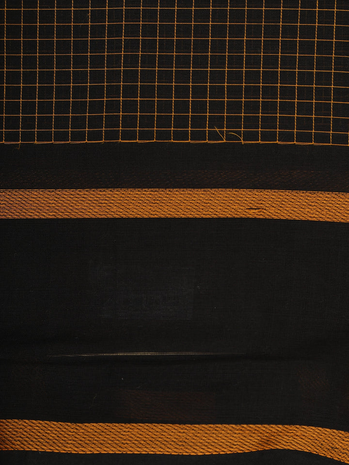 Black Checks Design Cotton Saree with Copper Zari Woven Border