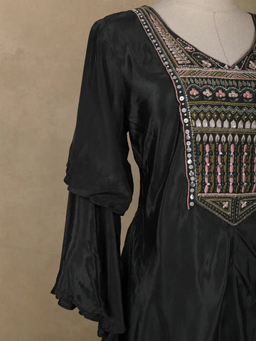 Black Embellished Design Crepe Palazzo Salwar Suit