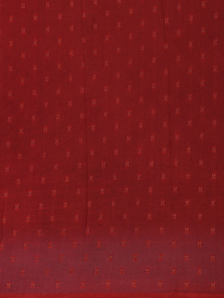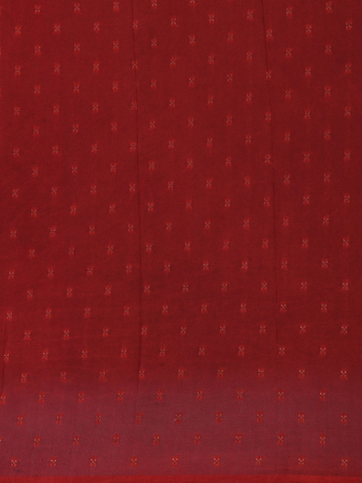 The rich red zari border with geometric detailing enhances its grandeur, while the contrast red blouse with subtle woven buttas completes the look with finesse. Designed for elegance and durability, this saree beautifully balances contemporary appeal with cultural heritage.