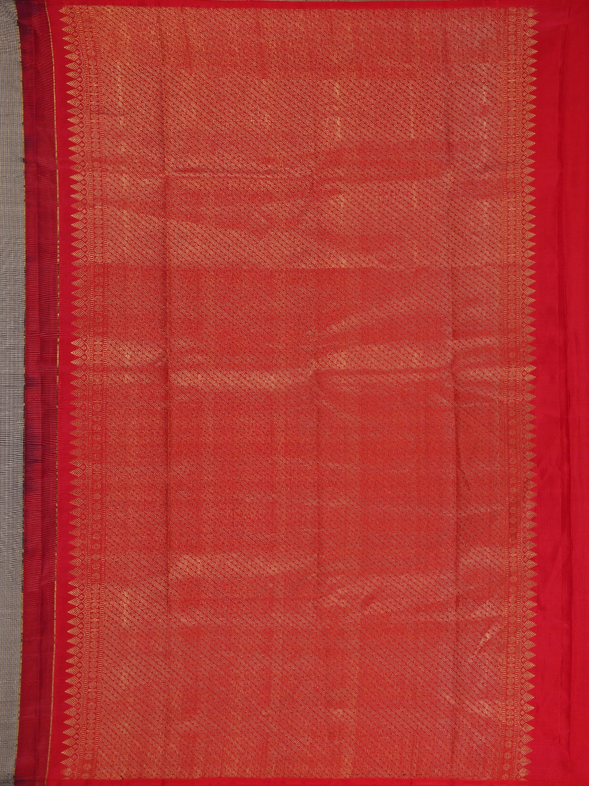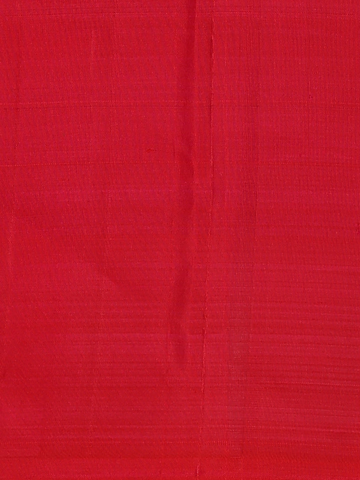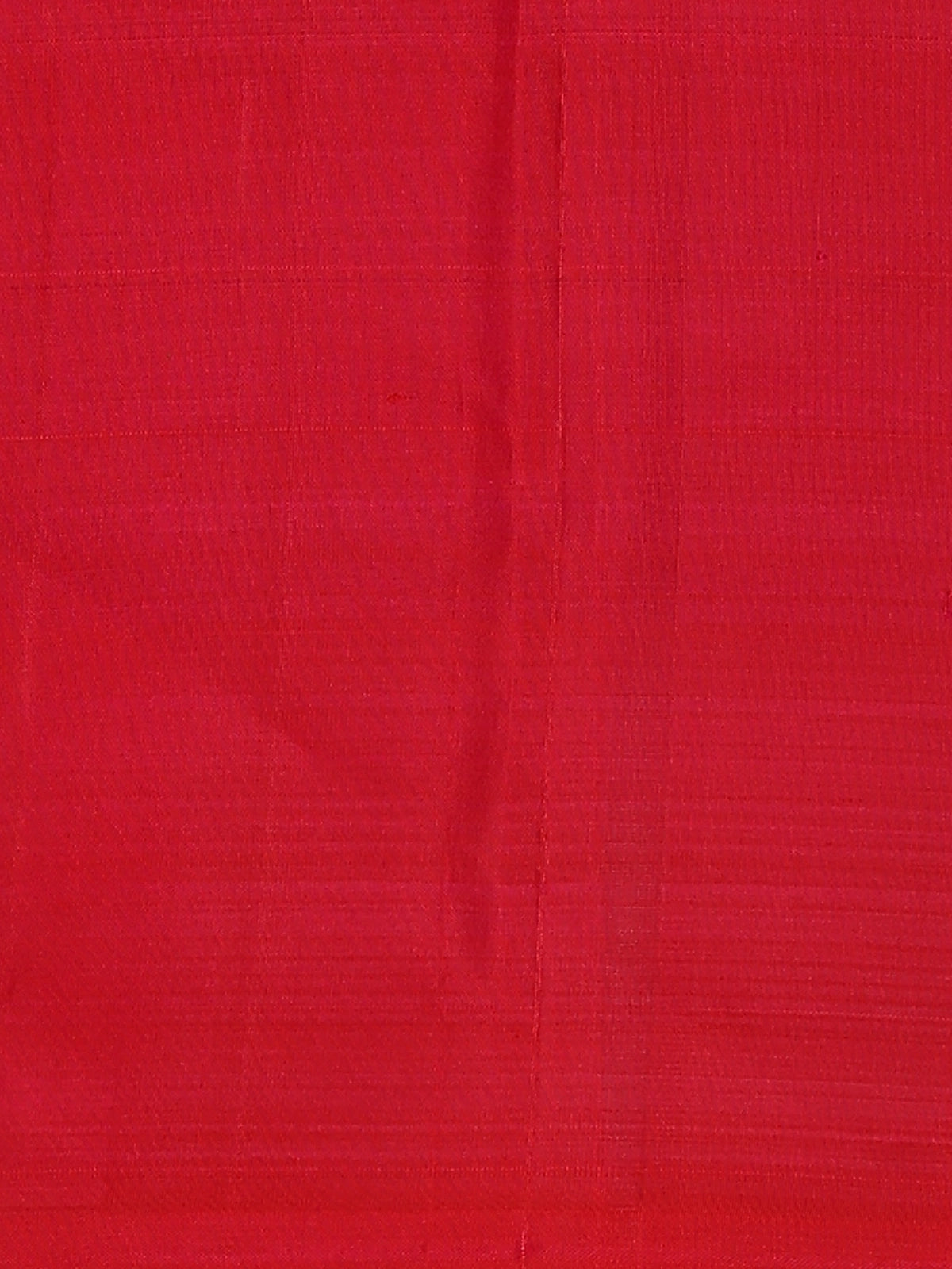 Paired with a contrast red blouse and pallu, the saree exudes a striking balance of grace and vibrancy. The ornate zari border frames the drape beautifully, lending it a royal appeal ideal for weddings, festive occasions, and grand celebrations.