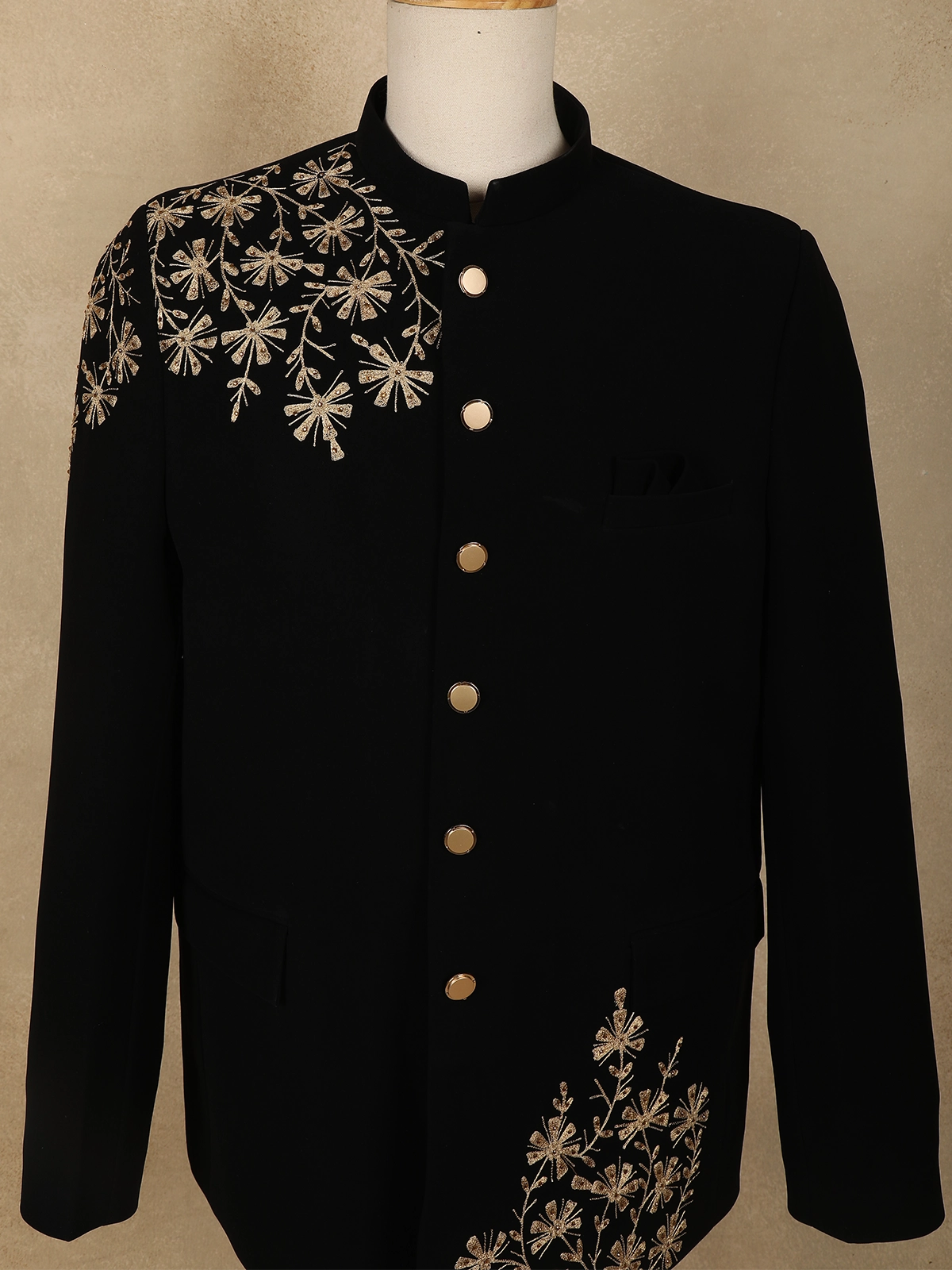 Elevate your occasion wear with this Black Floral Beads Embroidered Design Polynosic Men’s Suit, a perfect blend of refined elegance and modern craftsmanship. Designed for men who appreciate subtle luxury, this suit delivers a timeless silhouette with artistic detailing.