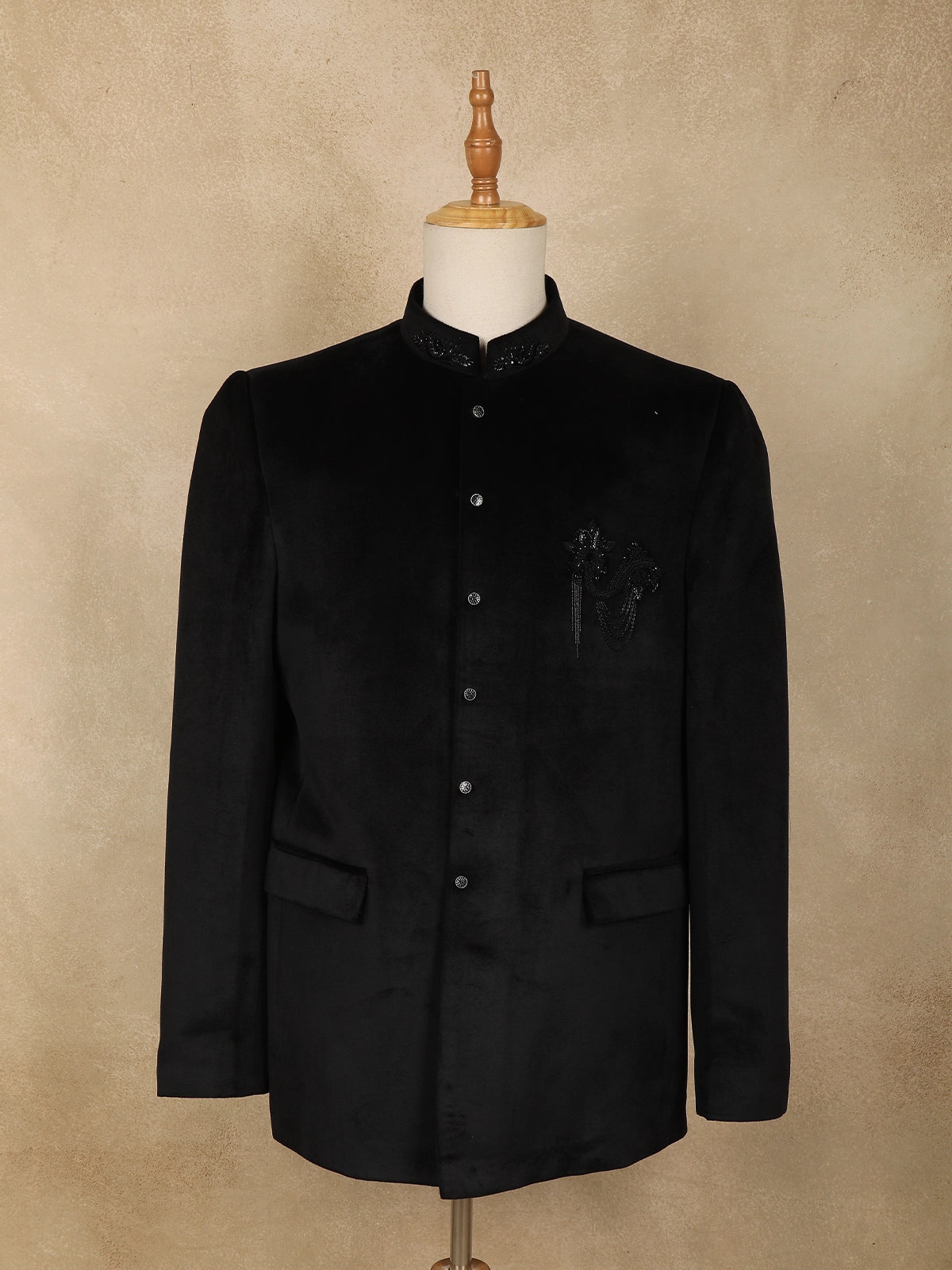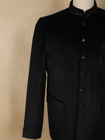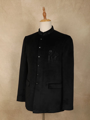 Black Floral Beads Embroidered Design Velvet Men’s Suit