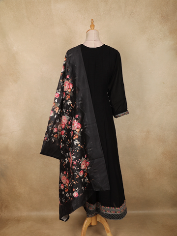 Black Floral Butta Design Georgette Straight Cut Salwar Suit with Dupatta